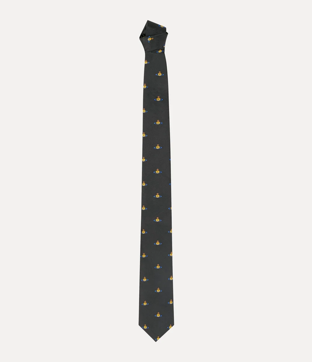 Vivienne Westwood silk tie offers the house’s multi-coloured orb jacquard across the design and features a wide blade that falls into a classic pointed tip.