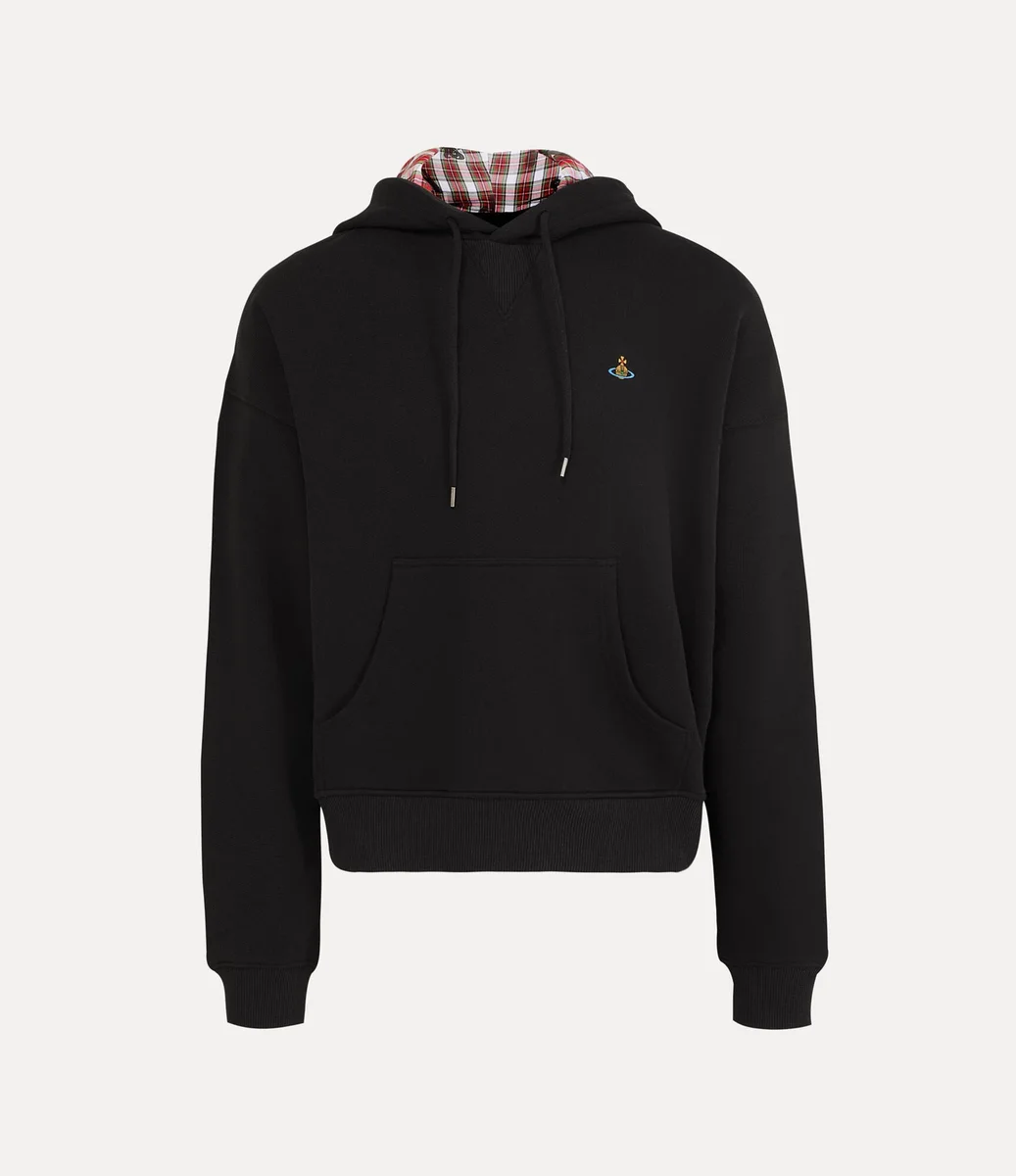 Our Ashton hoodie is crafted from soft organic cotton and cut to a relaxed silhouette, finished with an embroidered multicoloured orb at the chest. The hood is lined in the house’s signature red tartan, overlaid with artwork by artist Dominic Myatt – depicting a world littered with trash in an ironic vision of utopia.