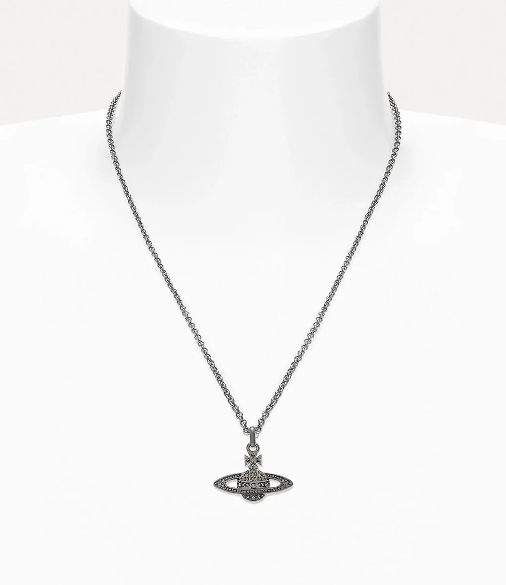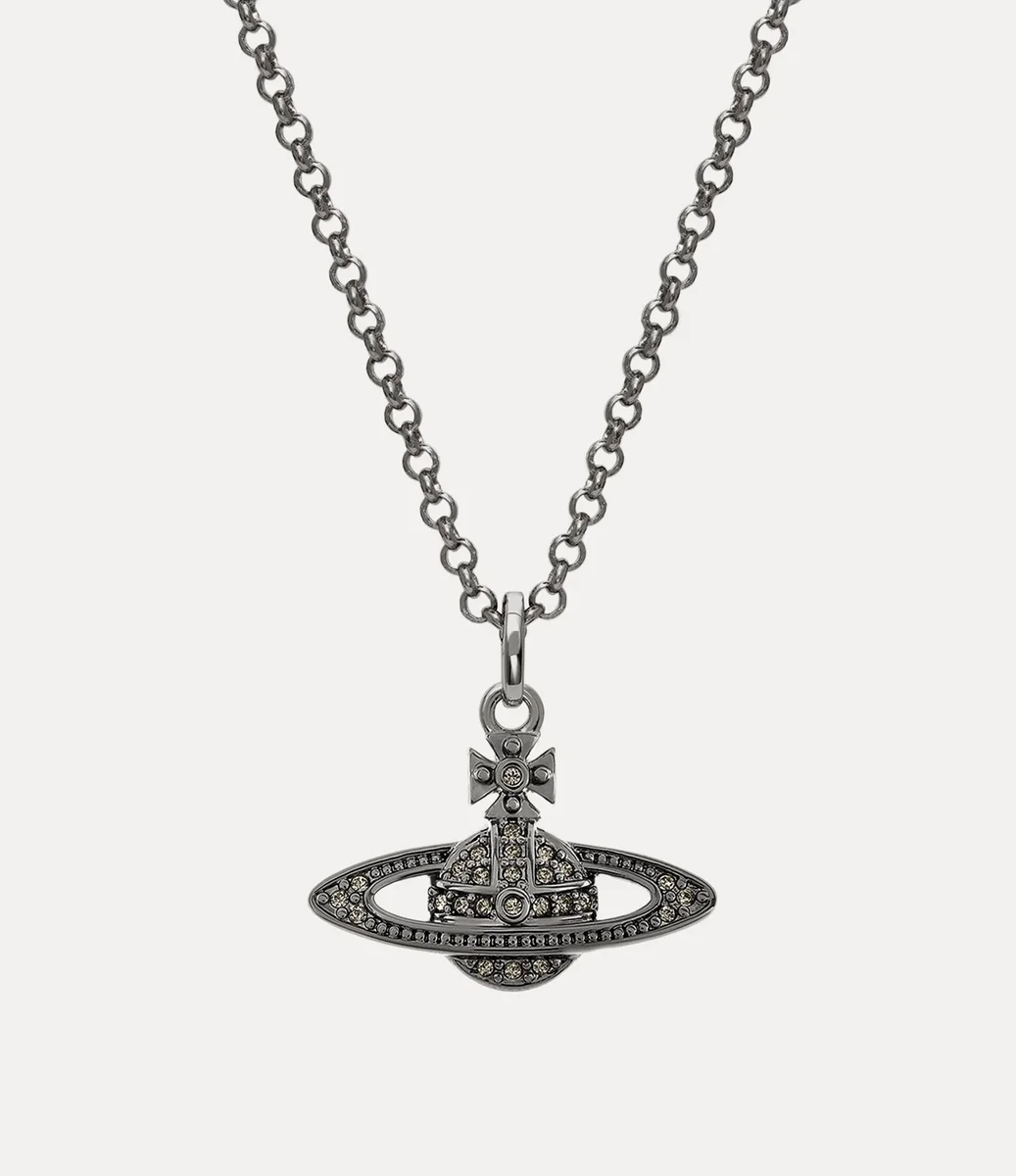 The house’s orb silhouette is synonymous with Vivienne’s vision of taking tradition into the future. The Man. Mini Bas Relief Orb Pendant necklace receives the orb shape, adorned with black crystal details and gunmetal-tone plating.