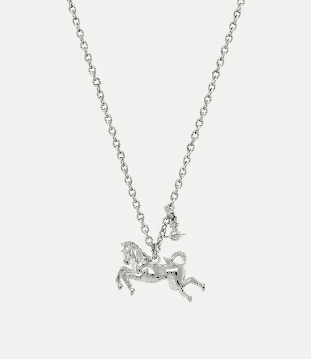 Vivienne Westwood Man. Cheval Pendant necklace in recycled silver, receives this season’s horse motif, suspended from a delicate platinum-plated chain.
