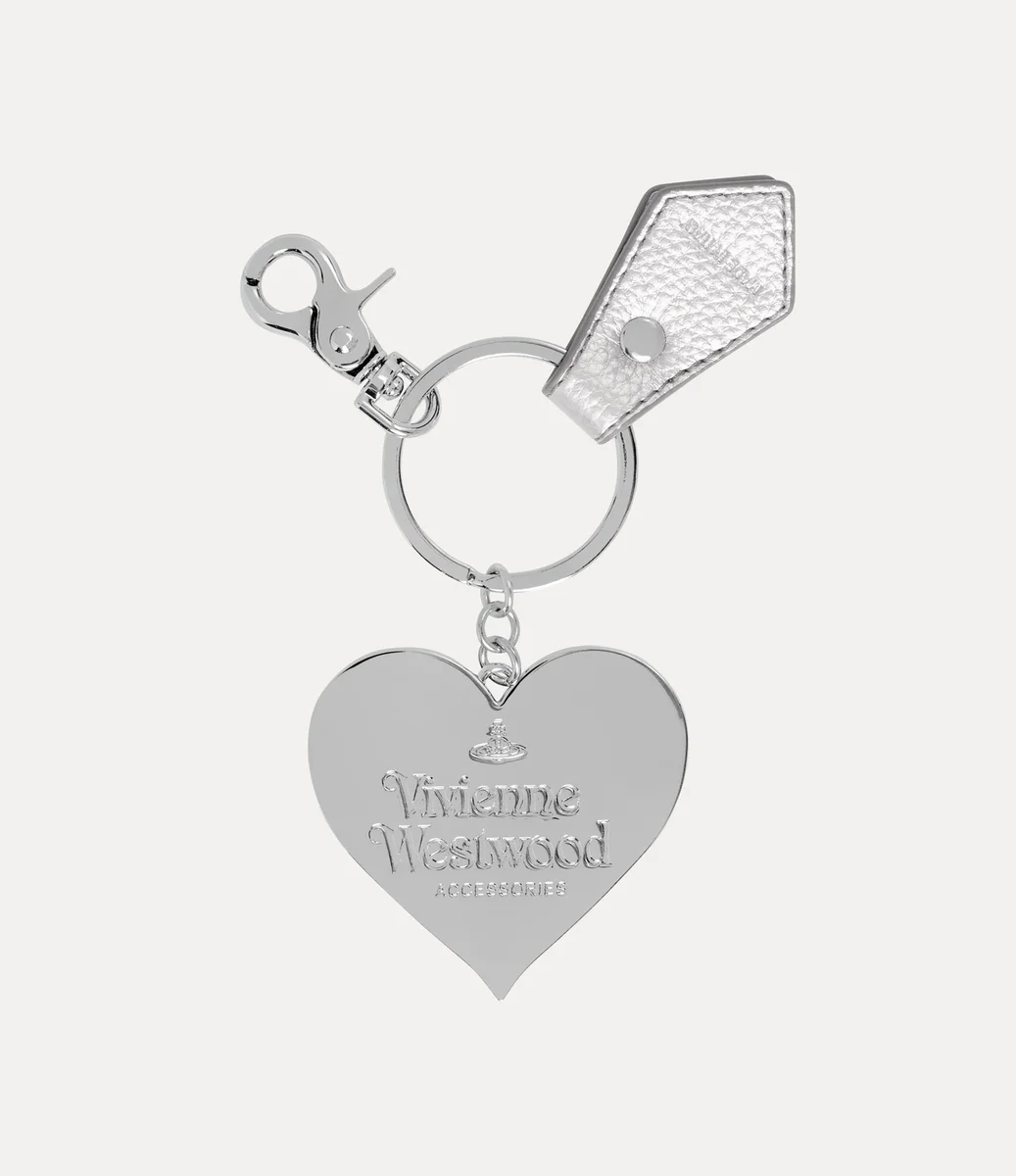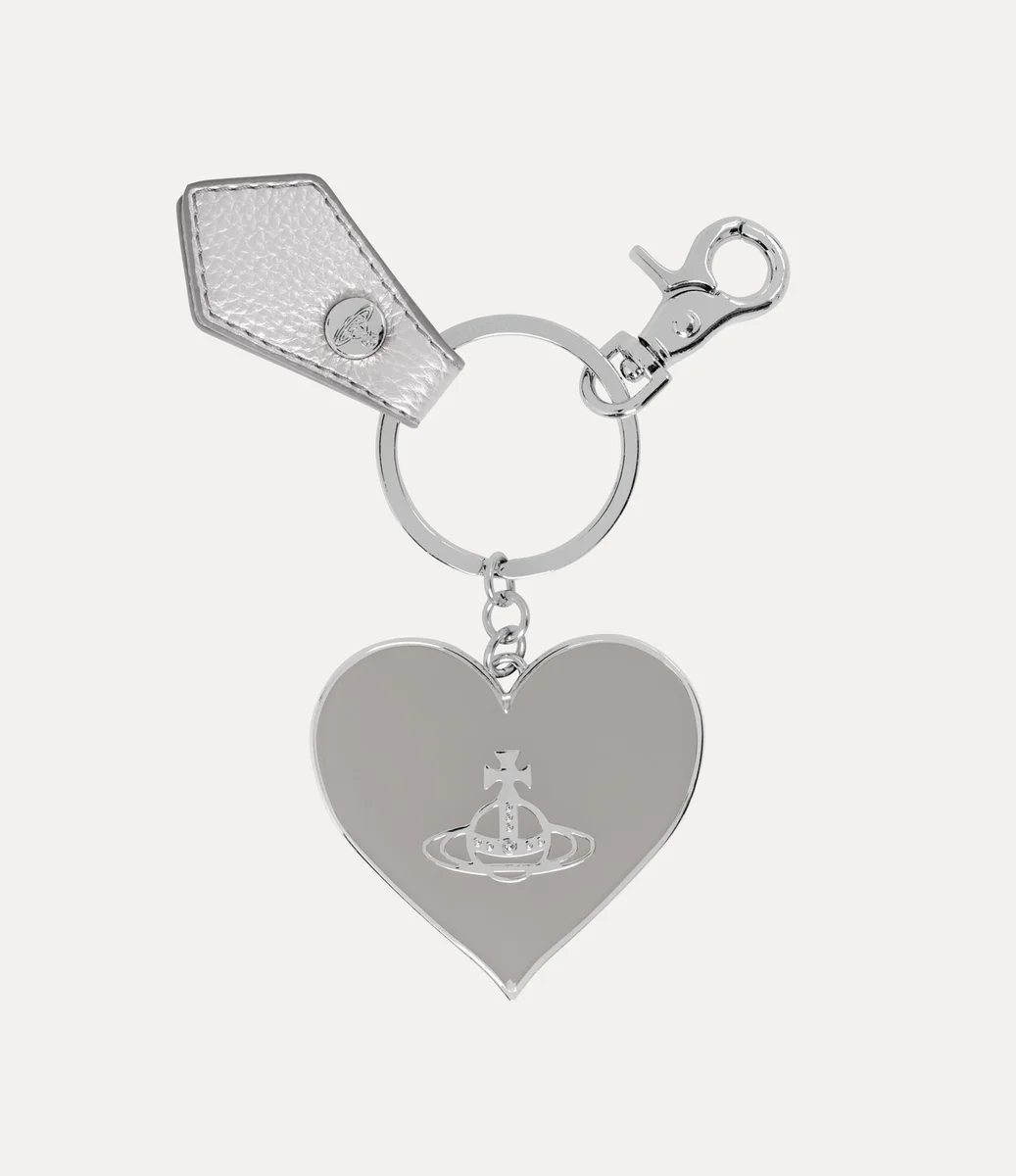 Vivienne Westwood Mirror Heart Orb keyring features a silver-tone split ring and a tonal tab detail, complete with a dangling heart motif.