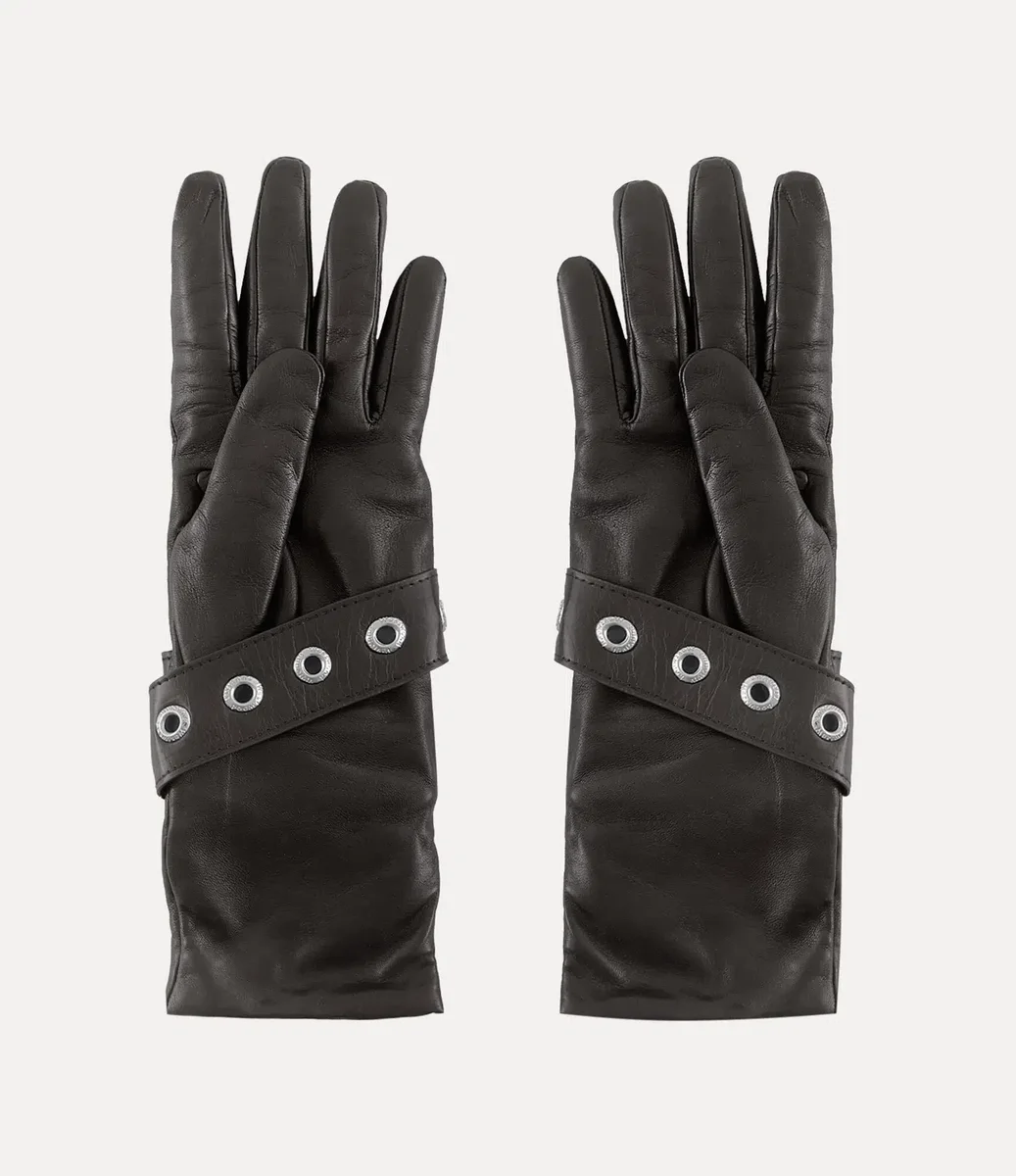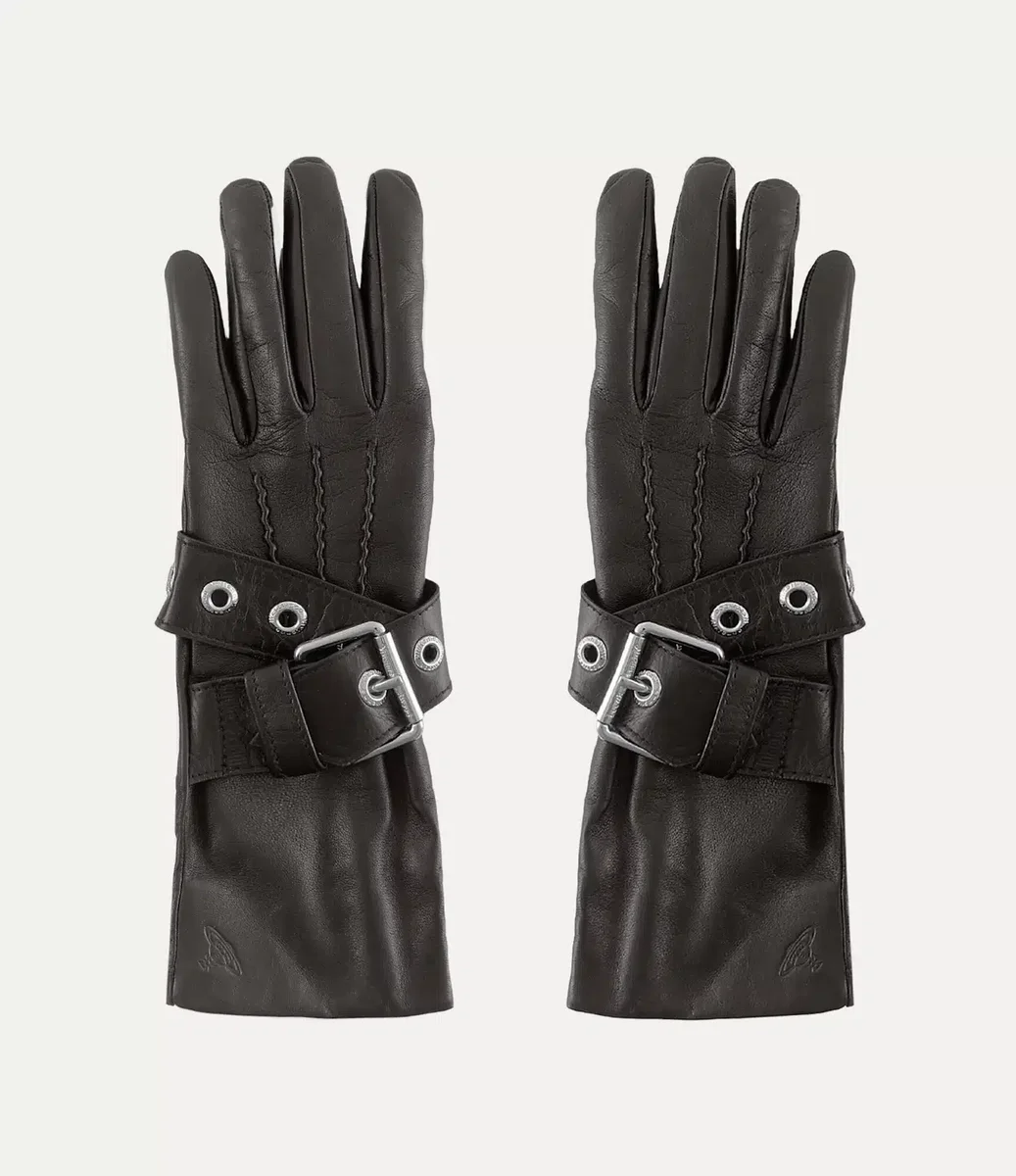 Vivienne Westwood Belt buckle gloves are offered in soft, smooth leather, complete with an extended cuff length.