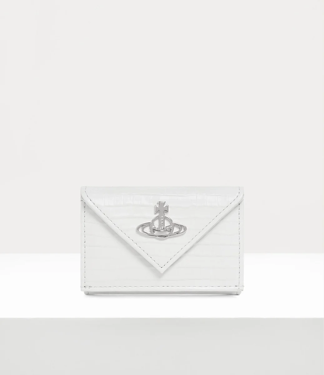Our Envelope billfold is reimagined in this season’s mini croc-effect embossed leather. Finished with the house’s signature metal ‘Line orb’ motif on the press-stud fastening, the piece embodies Vivienne’s vision of propelling tradition into the future.