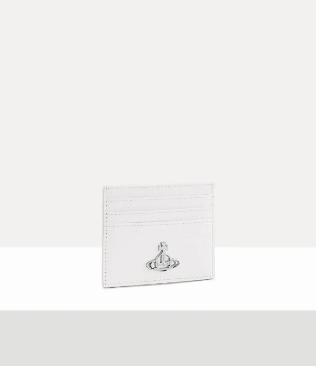 Vivienne Westwood Flat card holder features a croc-effect embossed finish, complete with the ‘Line Orb’ motif and card slots on either side of the design.