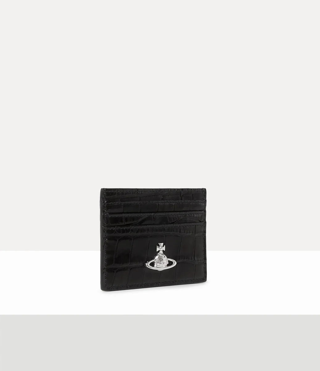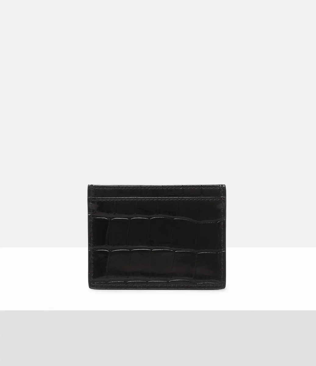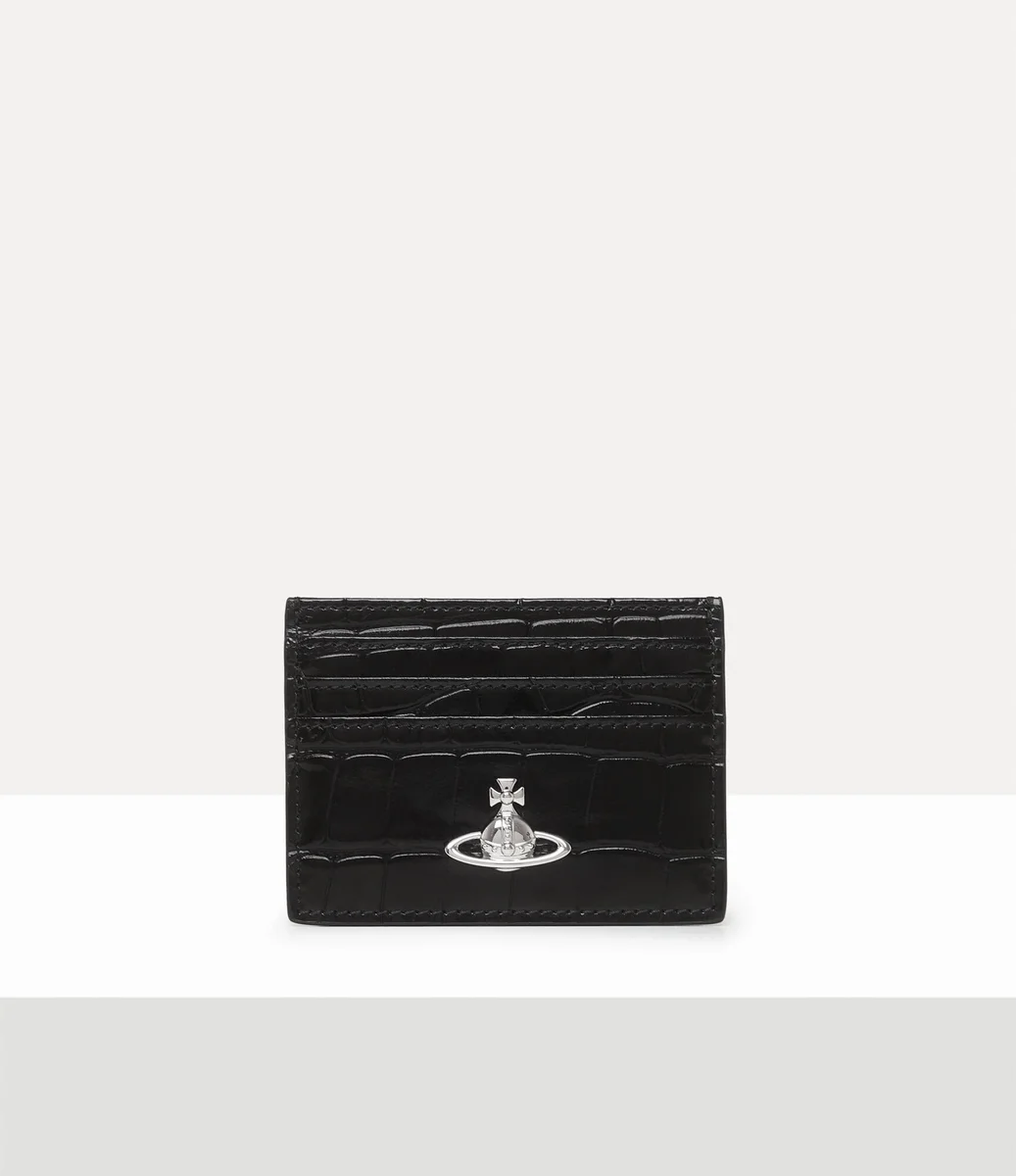 Vivienne Westwood Flat Card holder is crafted from shiny leather with a croc-effect embossed finish and is adorned with the silver-tone orb motif on the front.