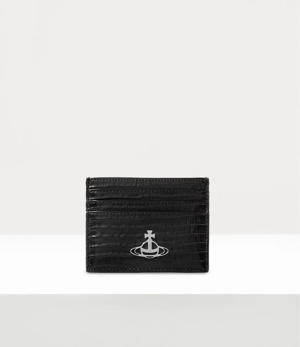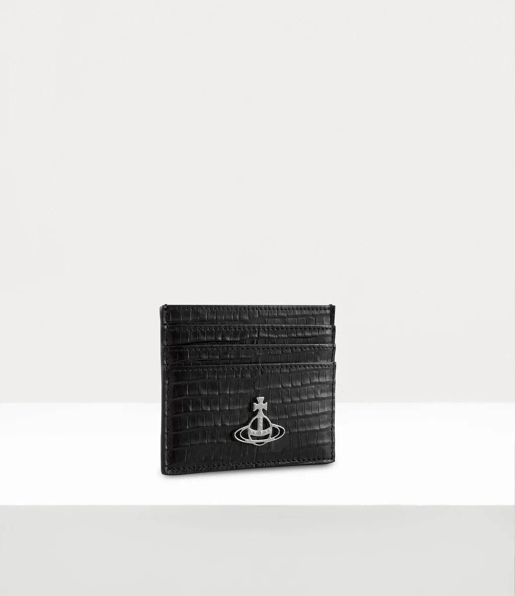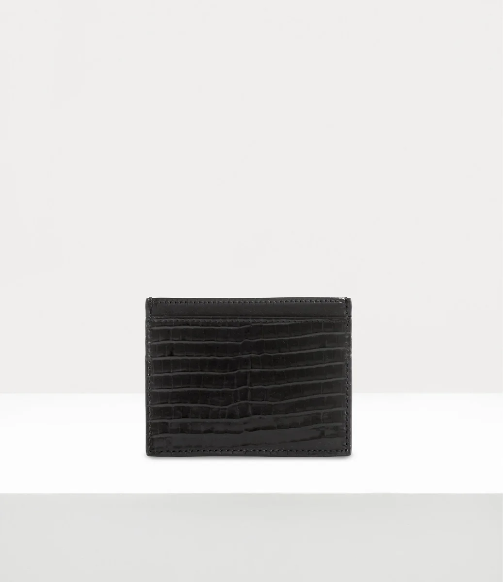 Vivienne Westwood Flat card holder features a croc-effect embossed finish, complete with the ‘Line Orb’ motif and card slots on either side of the design.