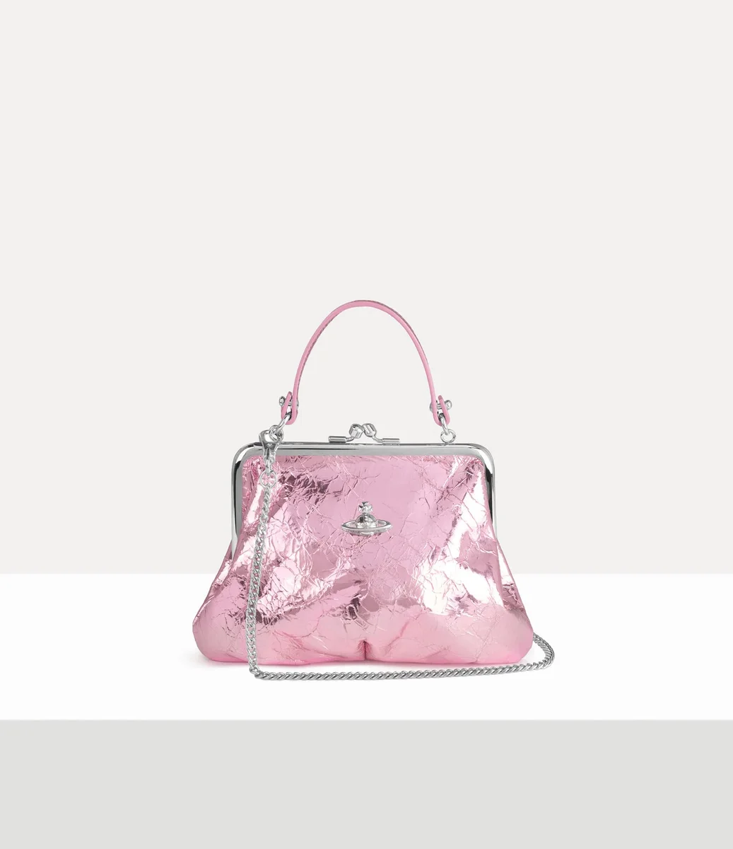 This season, our signature Granny Frame purse is reimagined in metallic crinkle-effect leather, drawing from the house’s rich archive. Detailed with an exposed polished framework and a kiss-lock clasp at the top, the piece recalls early 20th-century coin purses.