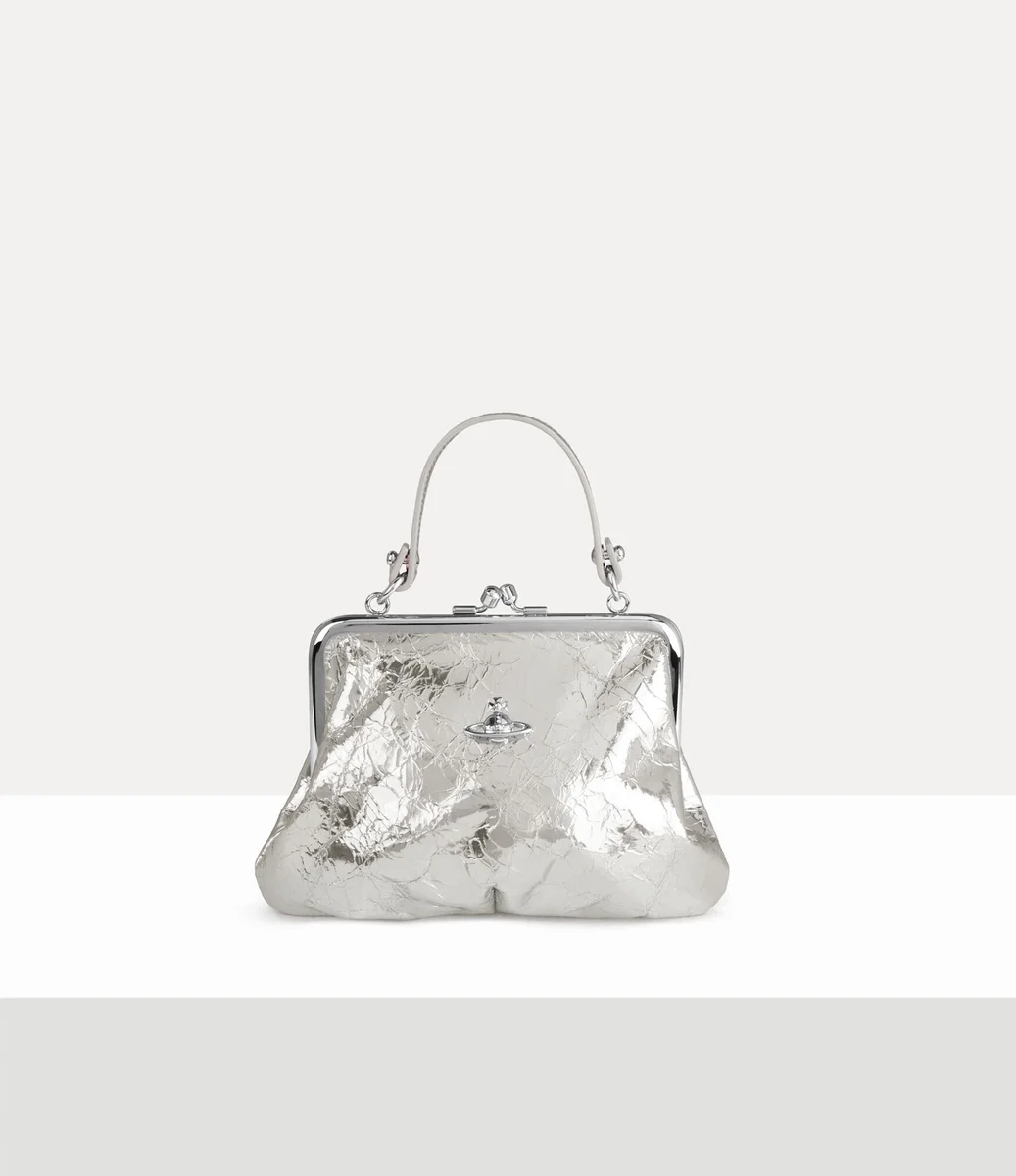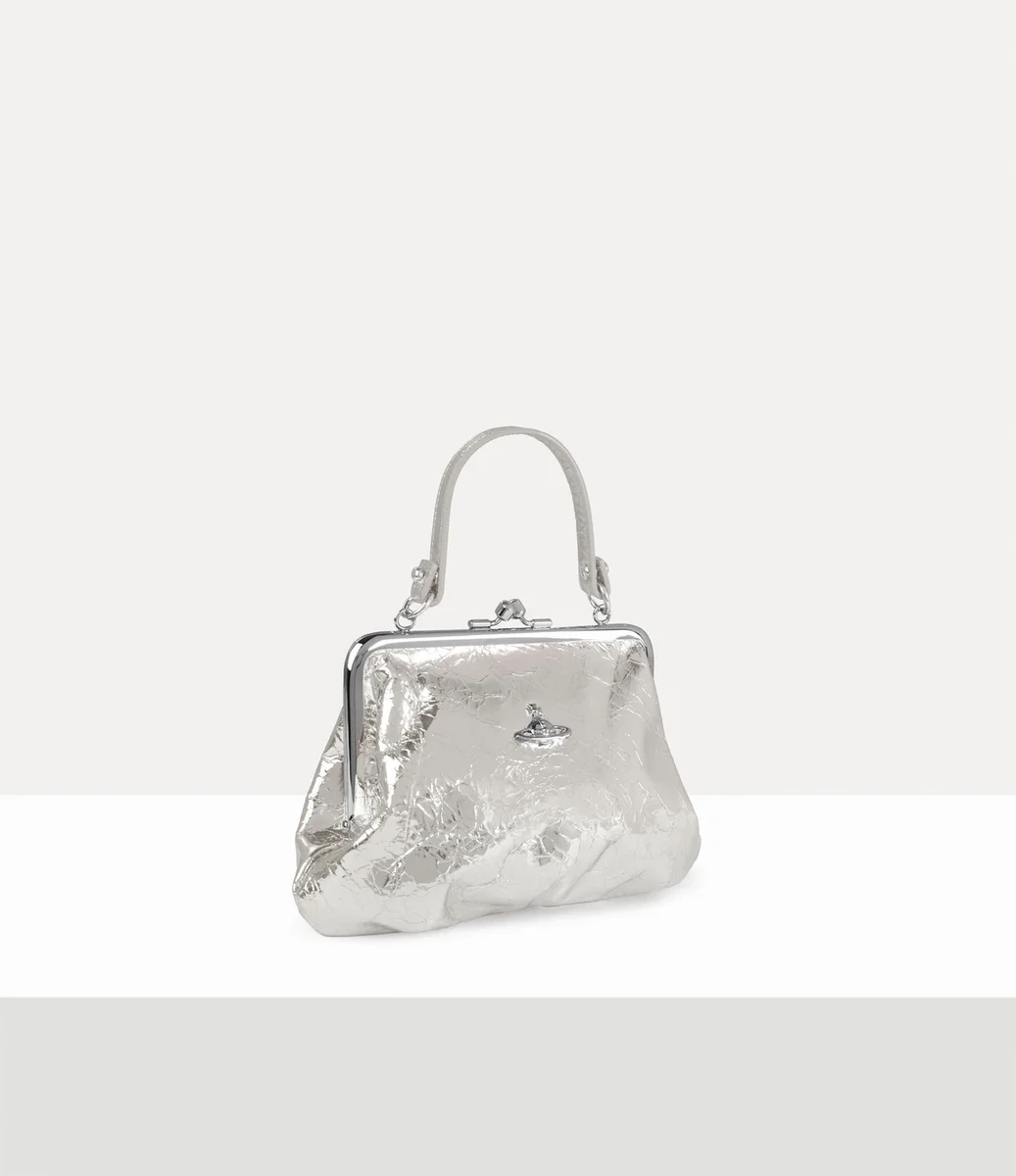 This season, our signature Granny Frame purse is reimagined in metallic crinkle-effect leather, drawing from the house’s rich archive. Detailed with an exposed polished framework and a kiss-lock clasp at the top, the piece recalls early 20th-century coin purses.