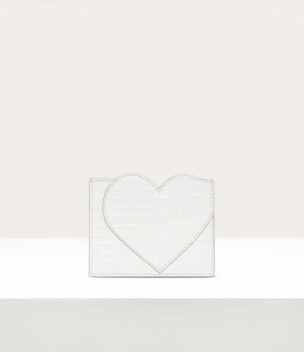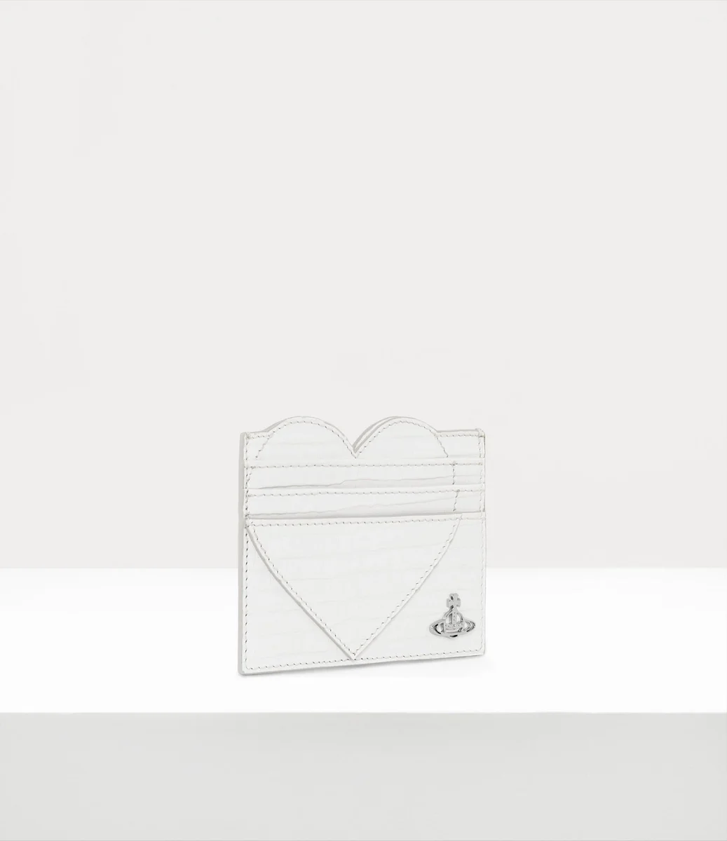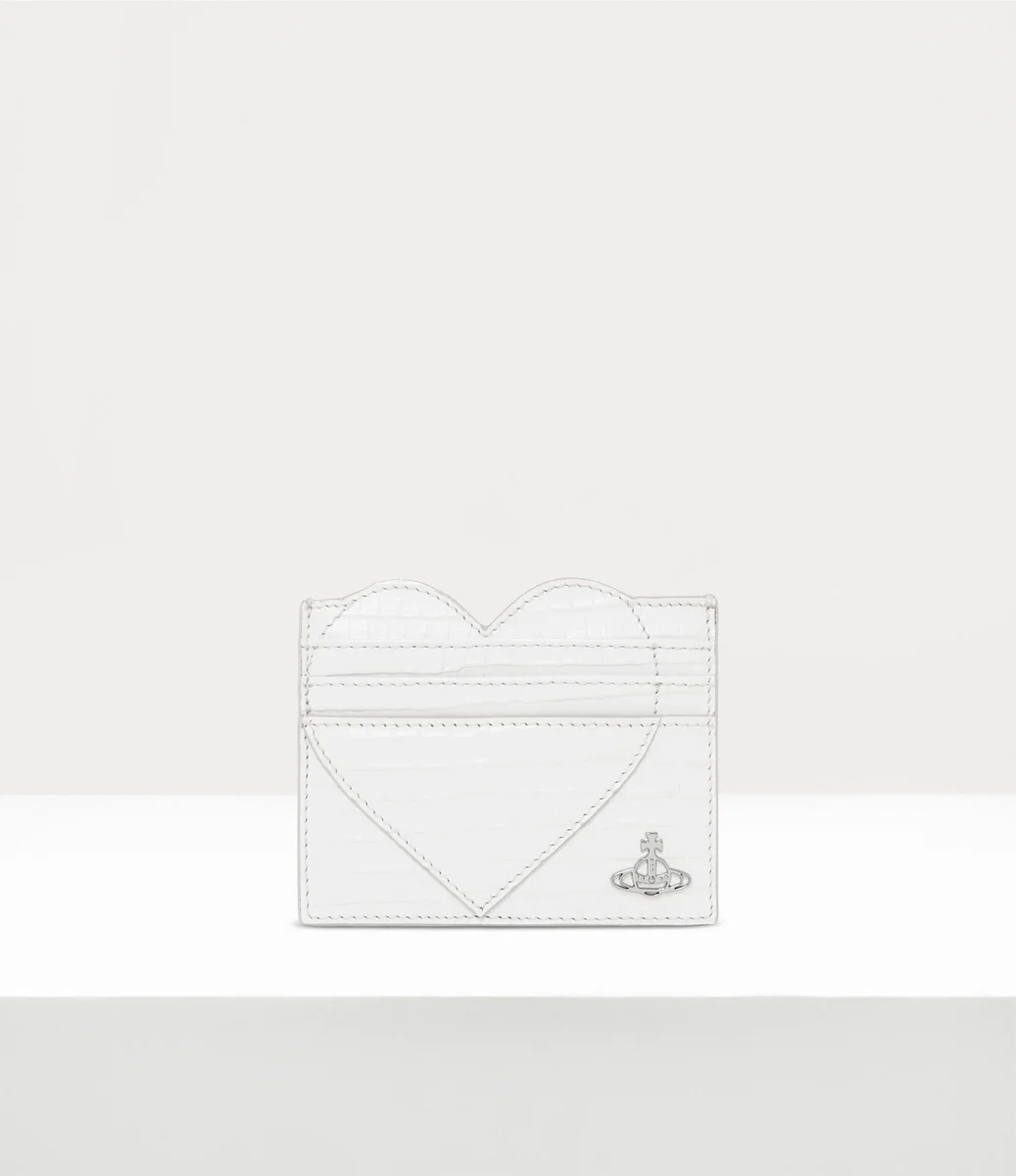Vivienne Westwood Heart card holder in leather features a croc-effect embossed finish, complete with the iconic asymmetric heart detail and orb emblem on the front panel.