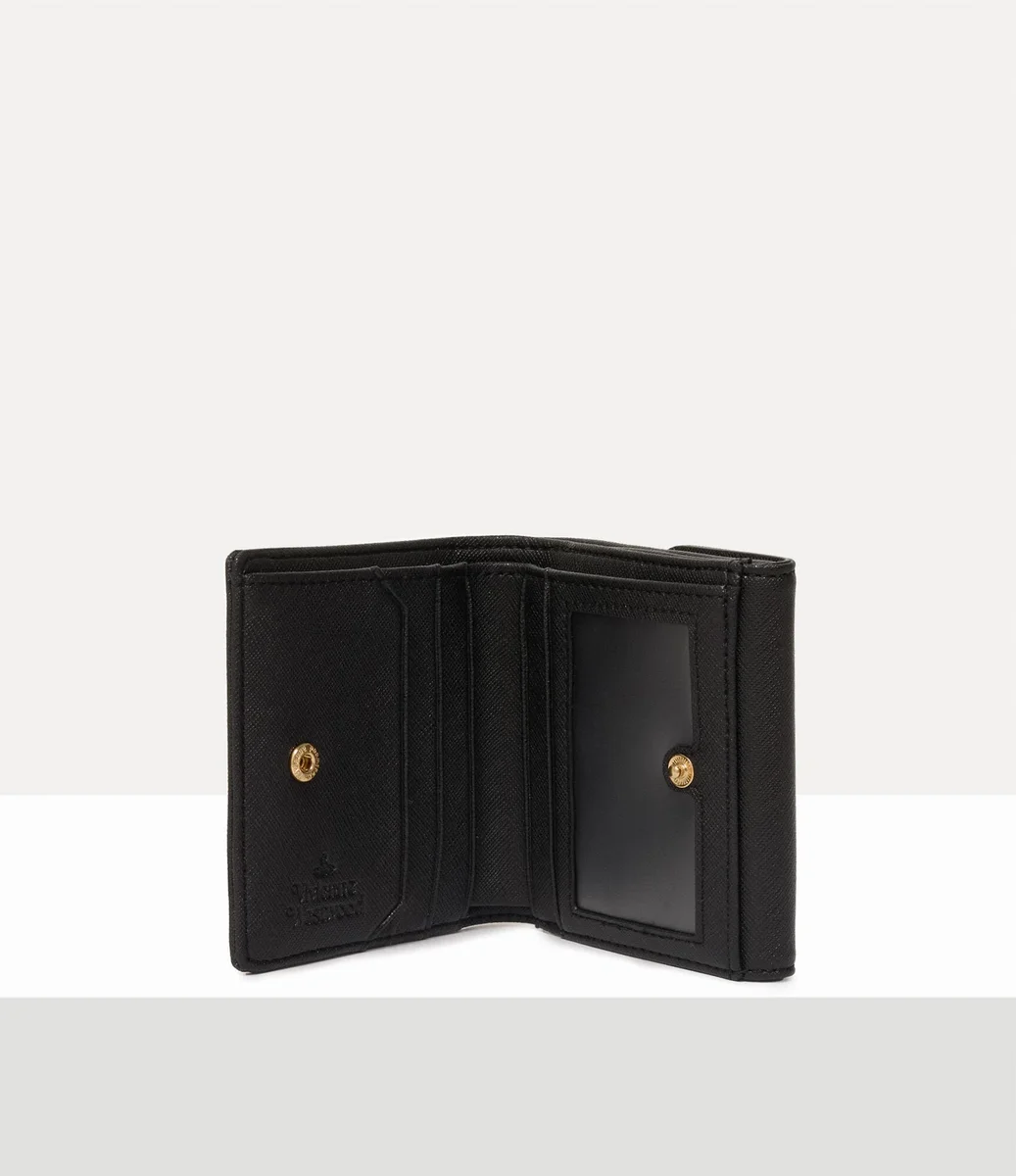 Vivienne Westwood Small wallet features a sleek bi-fold design, crafted from PU leather and distinguished by its crosshatch saffiano texture.