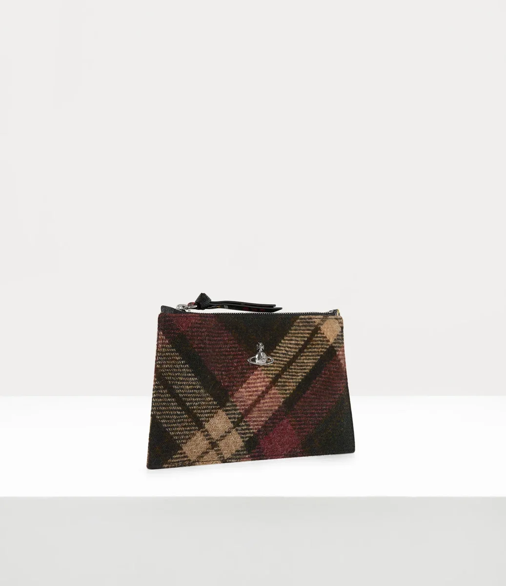 Vivienne Westwood Small Flat Zip clutch is crafted from archive Harris Tweed, finished with a hand-embroidered orb detail.