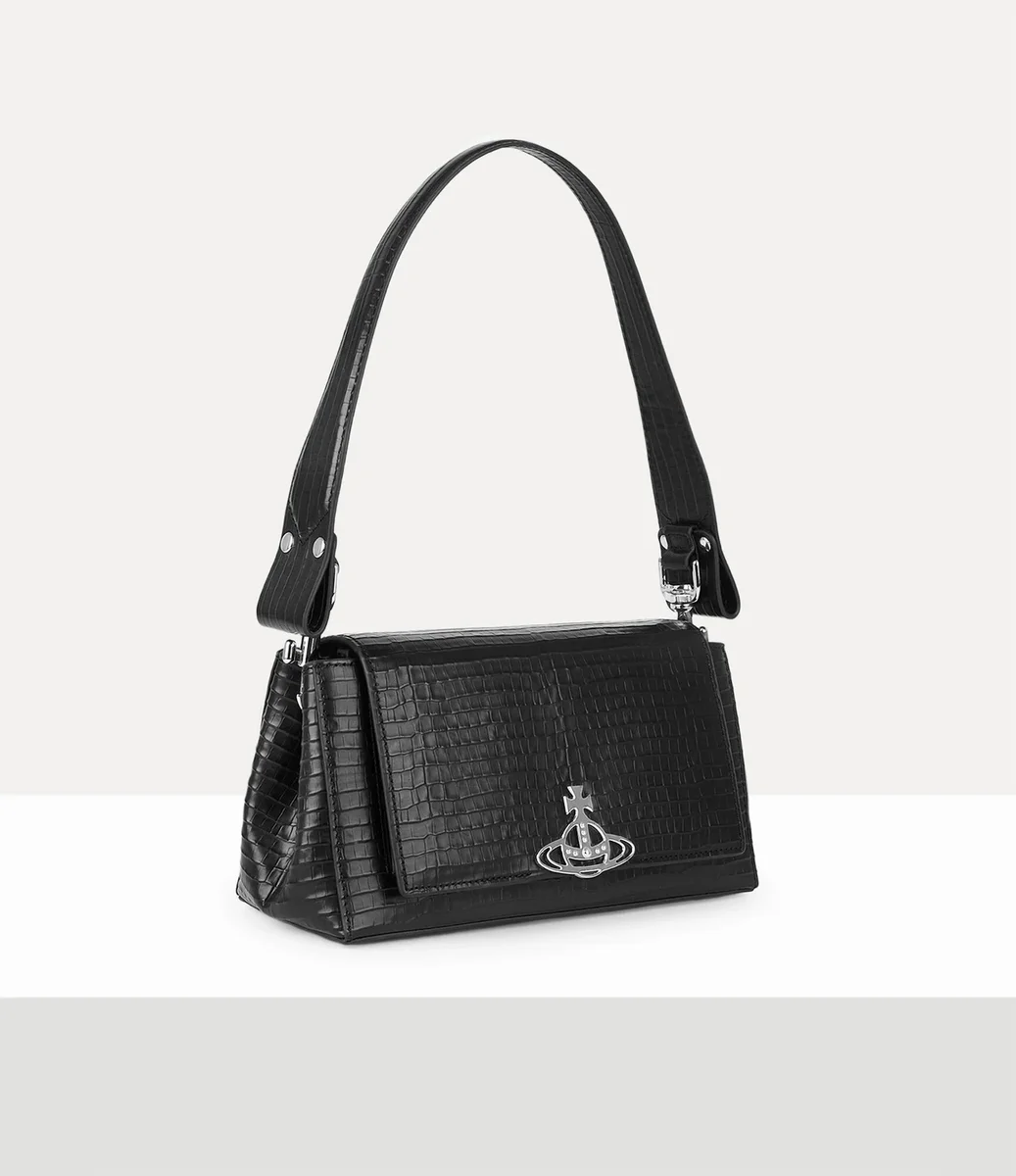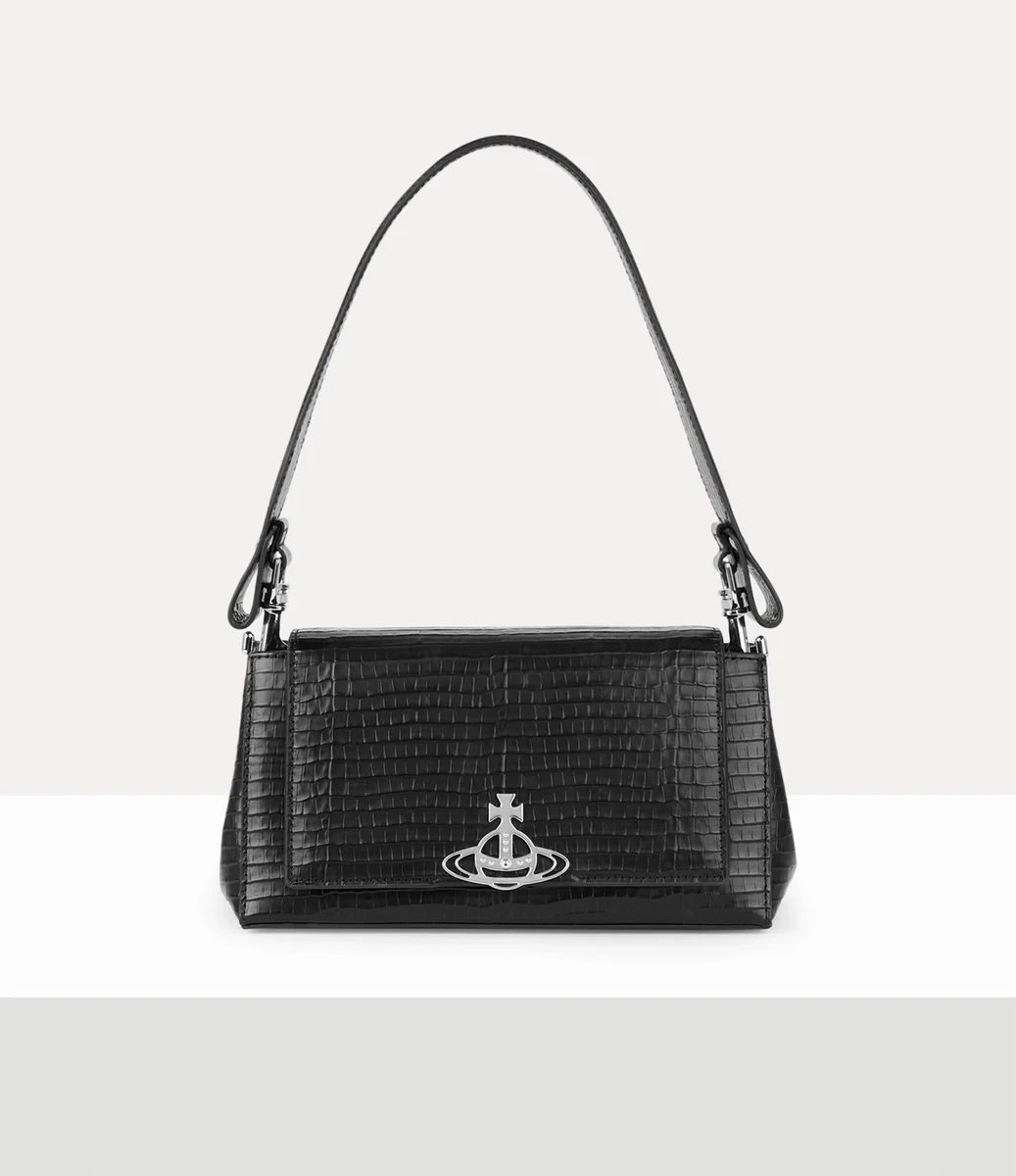 Our Hazel Medium handbag is crafted from leather and finished this season with a refined ‘Mini’ croc-effect embossing. The piece is lined with subtle moiré fabric and features the house’s signature ‘Line Orb’ motif on the front,which symbolises tradition, encircled by the celestial rings of Saturn, symbolising the future.