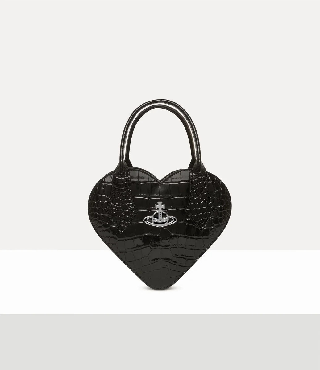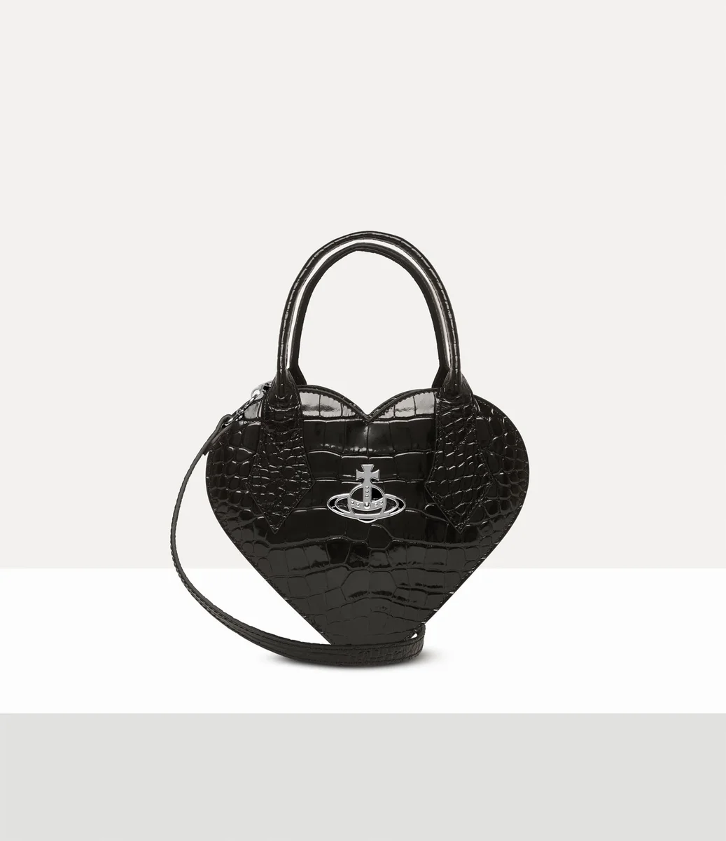 The silhouette of the Josephine Heart Crossbody bag revives the house’s signature heart-shaped motif. The piece features croc-effect embossed details, complete with a single-compartment design that closes with a zip-around fastening. Our house’s orb emblem is offered on the front panel – synonymous with Vivienne’s vision of launching tradition into the future.