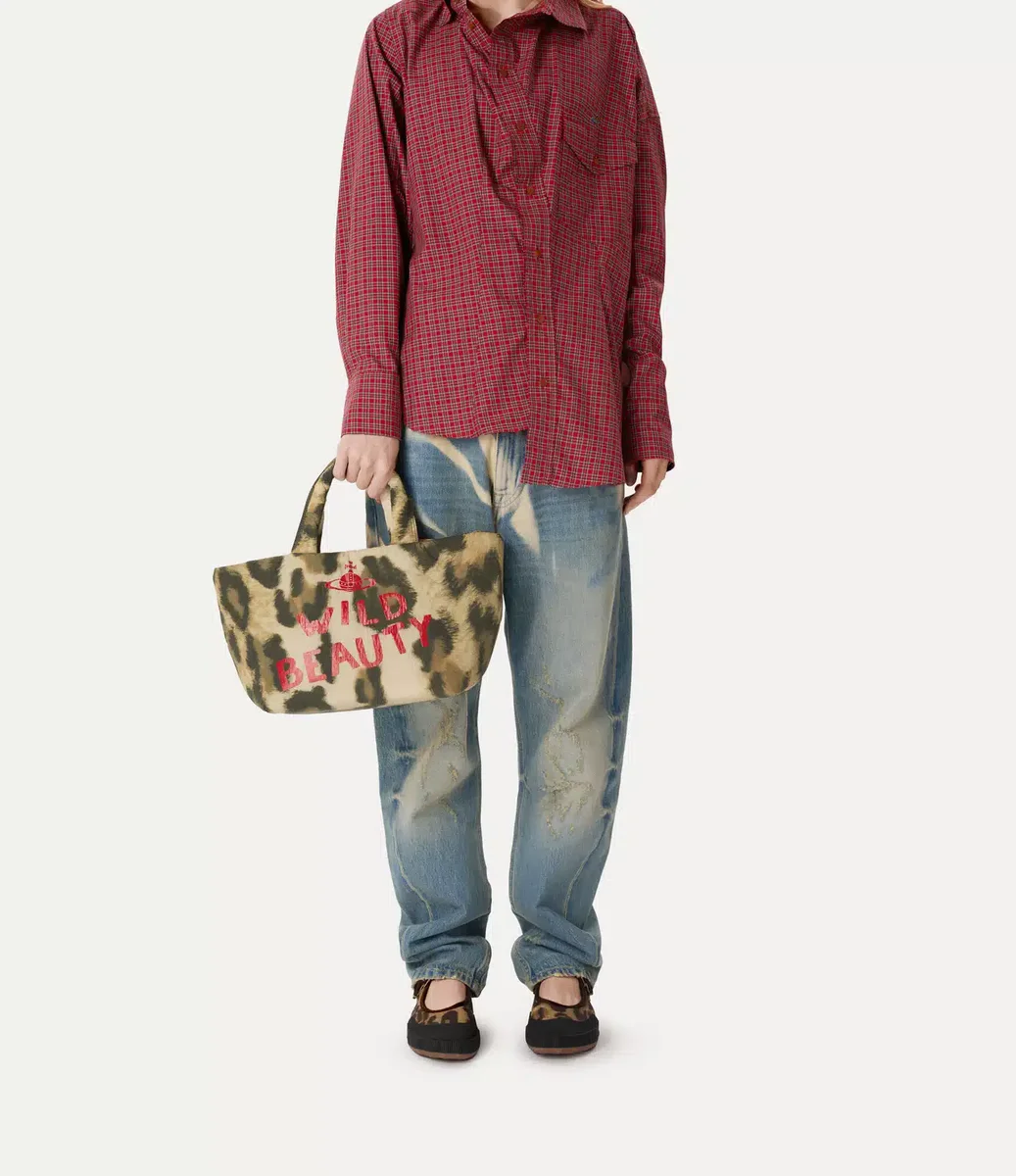 Vivienne Westwood Maud Medium tote bag is crafted from padded nylon, adorned with a bold leopard print motif.