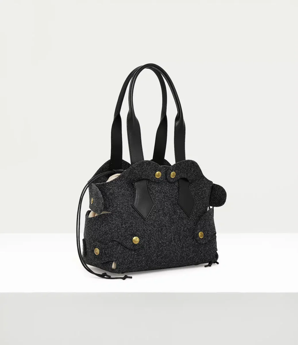 Vivienne Westwood Wilma Small tote is crafted from thick wool felt and features a modular popper system with signature spearhead handles.