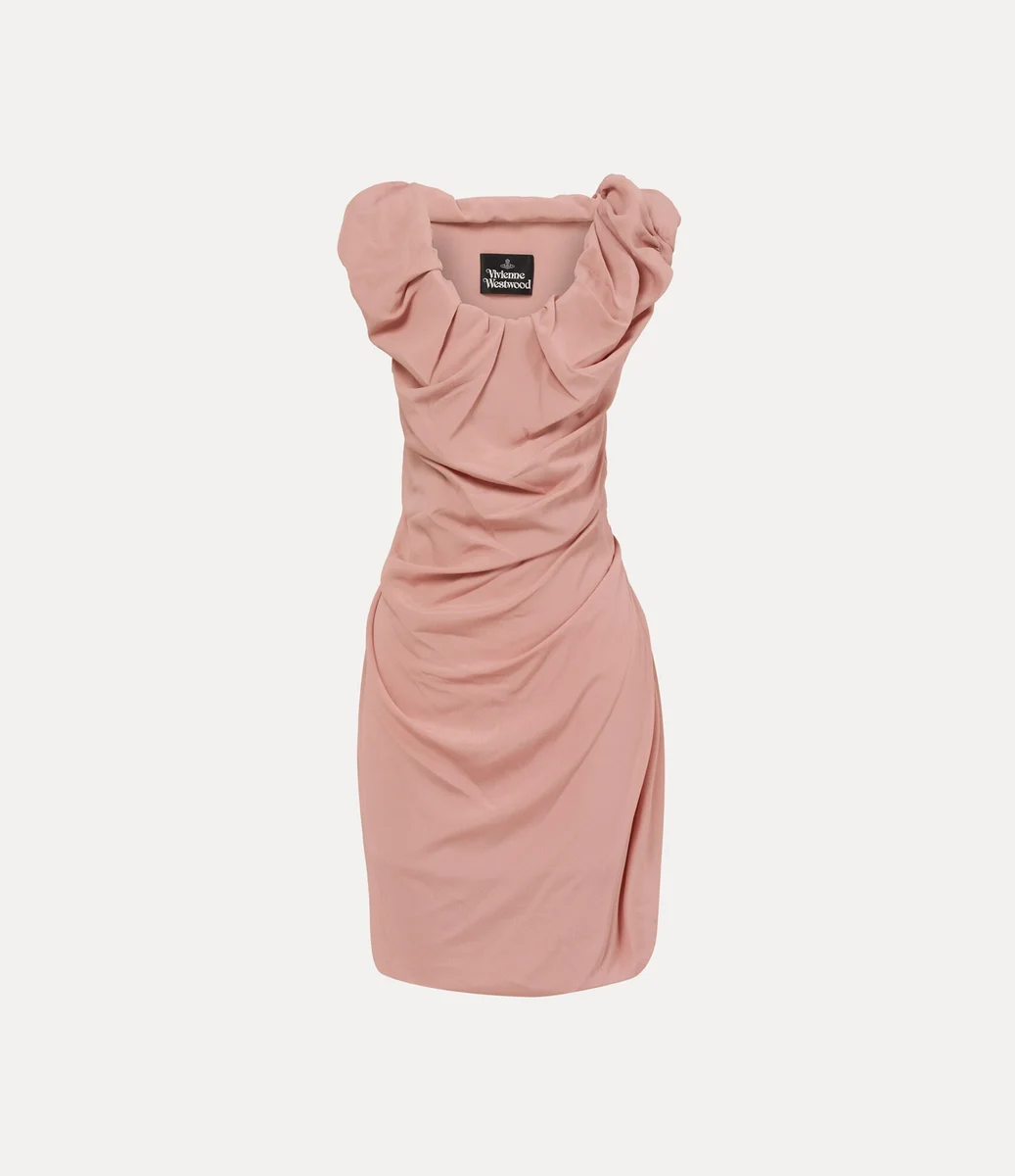 Vivienne Westwood Ginnie Amber Mini dress is reimagined this season in a soft silk-blend, elevated with a crinkled texture and matte finish.