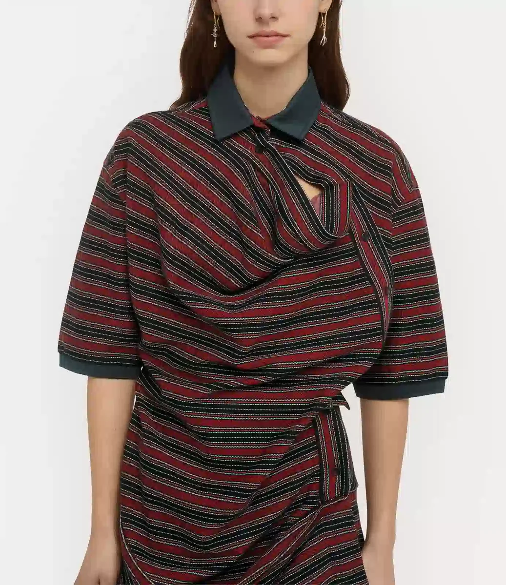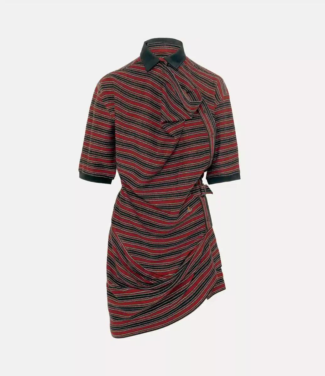 Vivienne Westwood Ming Polo Dress features this season’s archival-inspired striped motif with an off-centre button placket and drapery at the neckline.