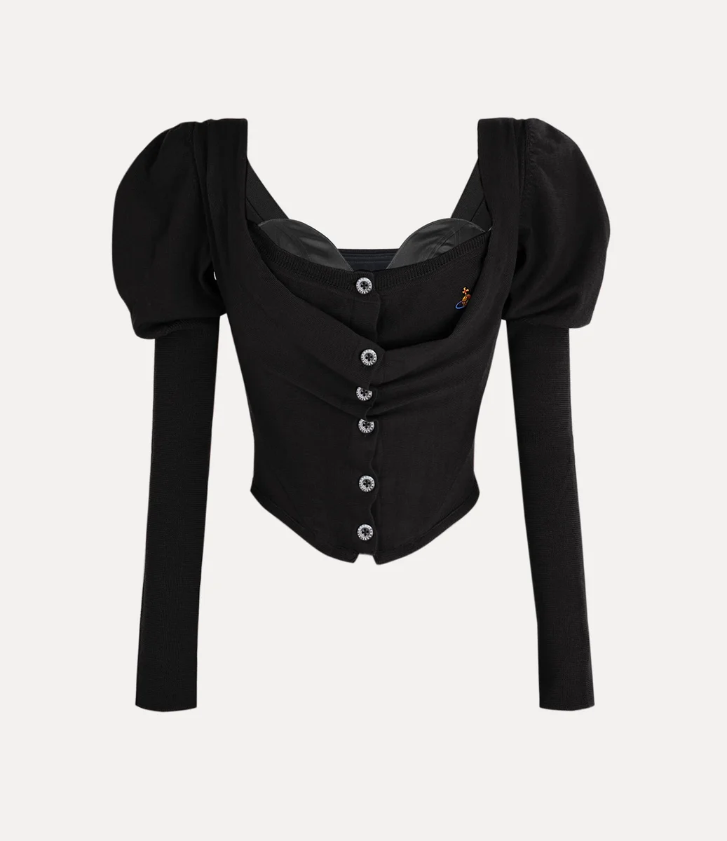 Vivienne Westwood Bea Corset cardigan is crafted from a soft woollen finish and fastens with shimmering mother-of-pearl buttons.