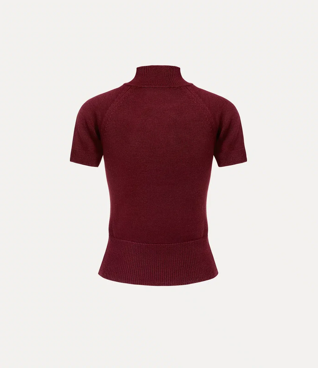 Our Bea turtleneck top is crafted from soft wool and features a mid-rise neckline that flows into a subtly cropped hem. Designed with short raglan sleeves and ribbed trims, the piece is finished with a multicoloured embroidered orb at the chest – synonymous with Vivienne’s vision of launching tradition into the future.