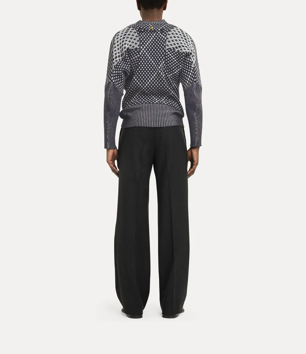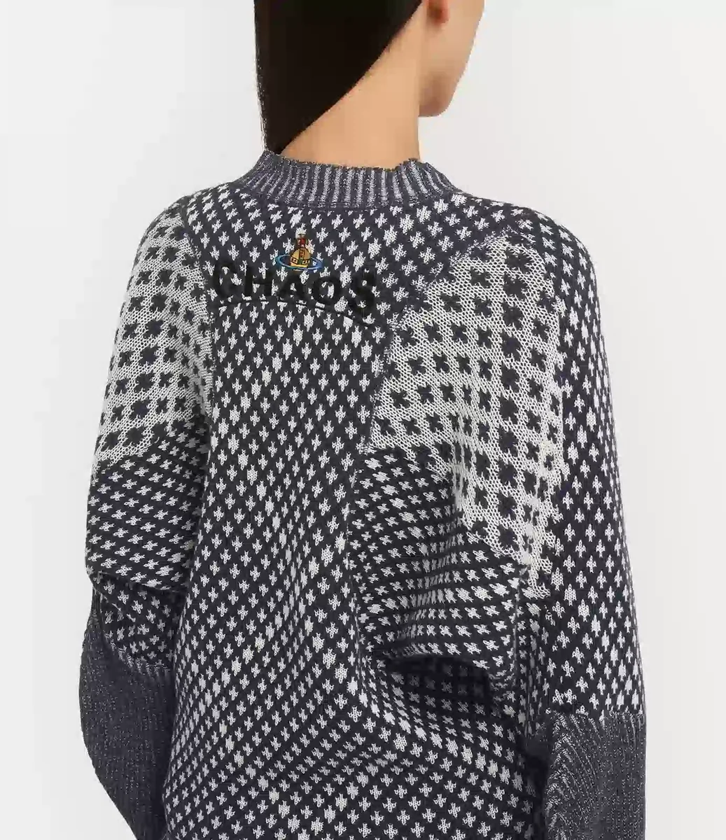 Knitted from a soft cotton-wool blend, our Pourpoint jumper features the archival ‘Crosses Argyle’ jacquard, overlaid with a ‘Distressed Tartan’ motif. Cut with a ribbed V-neckline and long sleeves with inset panels, the piece is finished with ribbed trims and an embroidered ‘Chaos Orb’ emblem at the back.