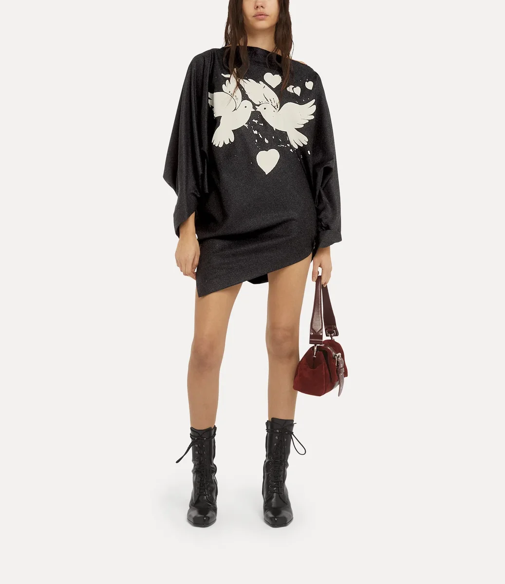 Our Infinity top is crafted from metallic-brushed wool and adorned with the ‘Dove and Heart’ artwork. Detailed with long sleeves that gather at the wrists, it features a wide boat neckline and dropped shoulders, draping into an oversized silhouette that ends in an asymmetric hemline.