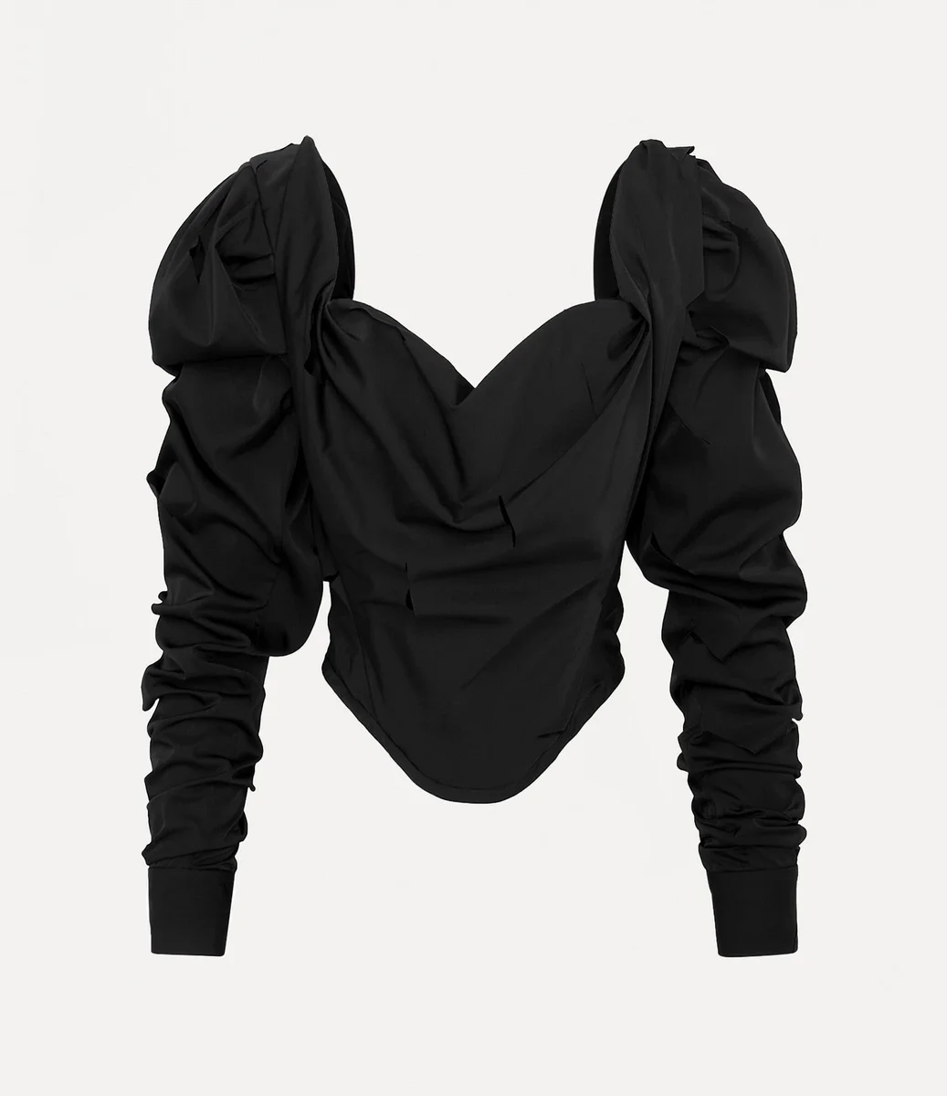 Our LS Sunday Corset Top is crafted from richly dyed taffeta and features a delicate laser-cut design, inspired by artwork from the Andreas Kronthaler Autumn–Winter 2024–2025 show. The piece is shaped with a sculpted corset-style bodice and finishes with an orb-engraved zip puller at the back.