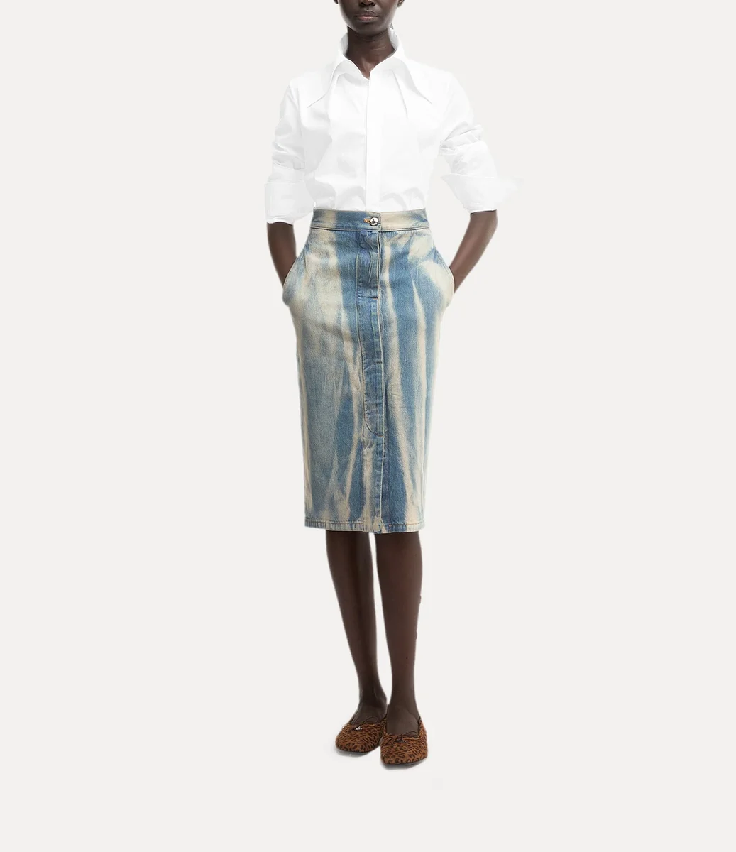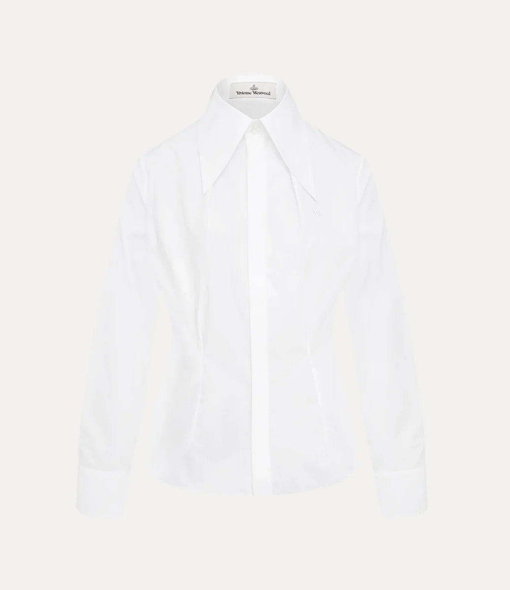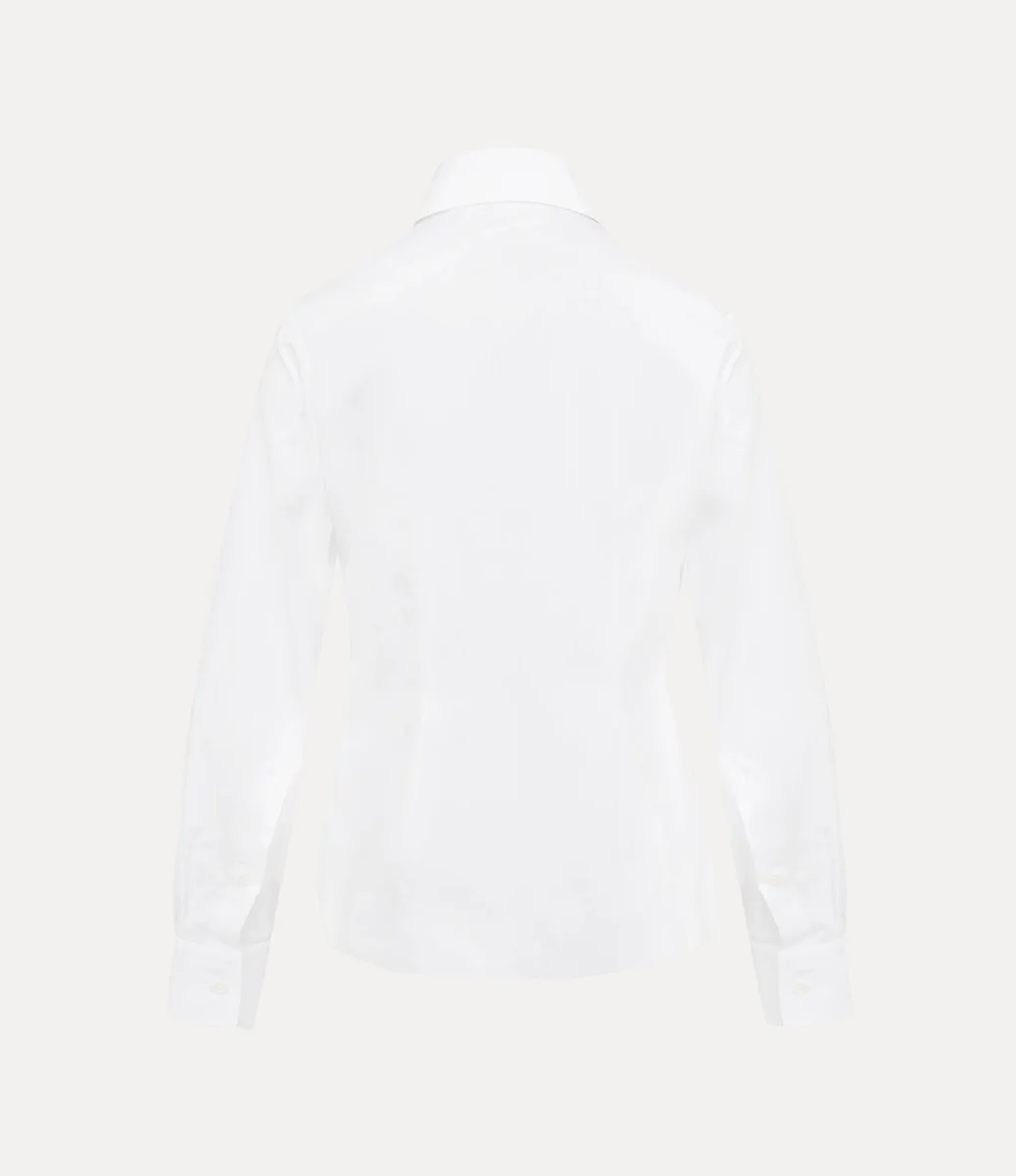 Our Violin Tuxedo shirt features the house’s signature two-button collar, complete with our signature ‘VW’ monogram embroidery on the left-hand side of the chest. Crafted from soft organic cotton, the piece offers an exaggerated pointed collar, finished with delicate darting at the bust and waist for a sculpted, contoured shape.