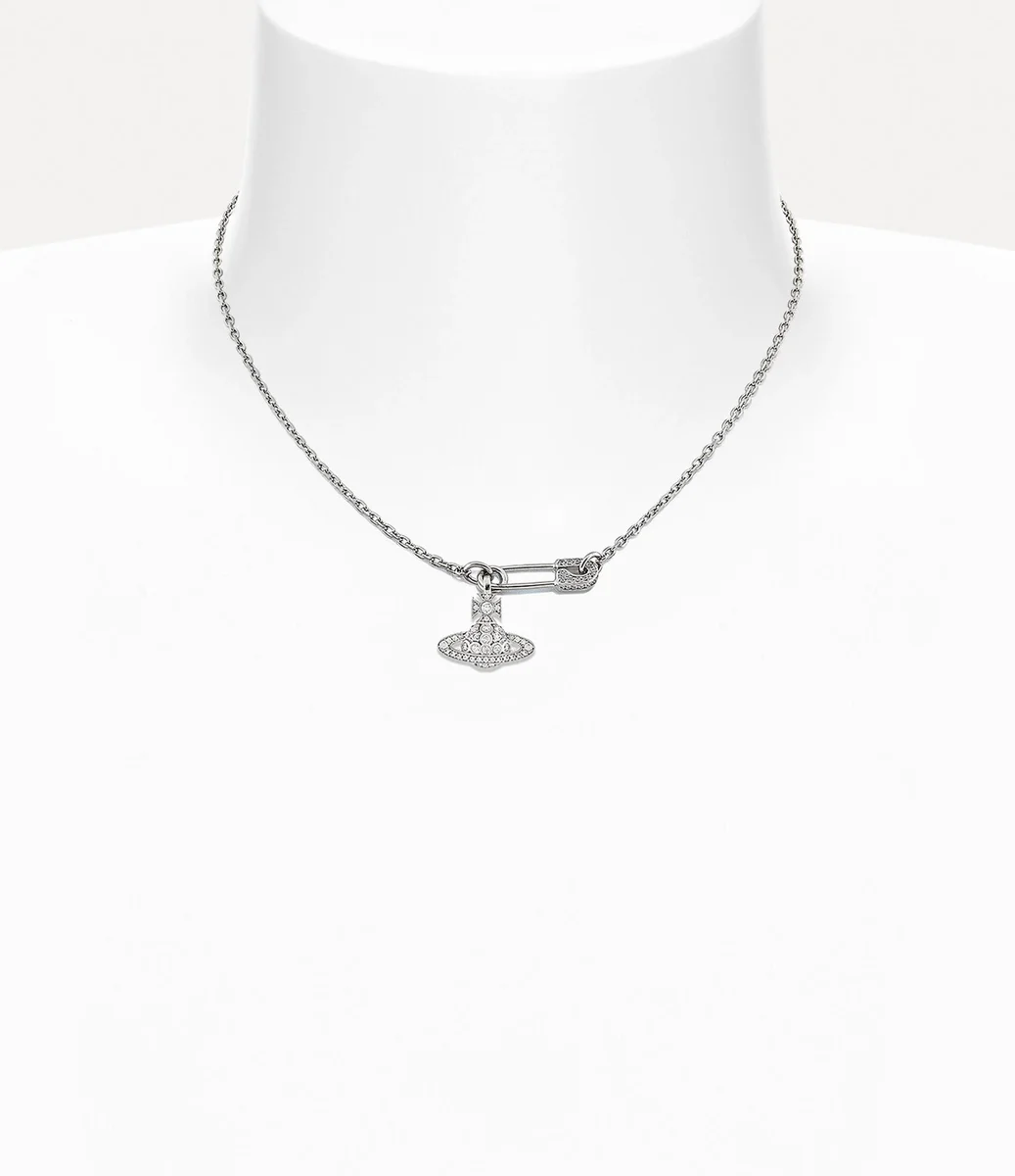 Vivienne Westwood Lucrece Pendant necklace features crystal-embellished details in polished silver tones, accented by our safety pin motif and iconic orb design.
