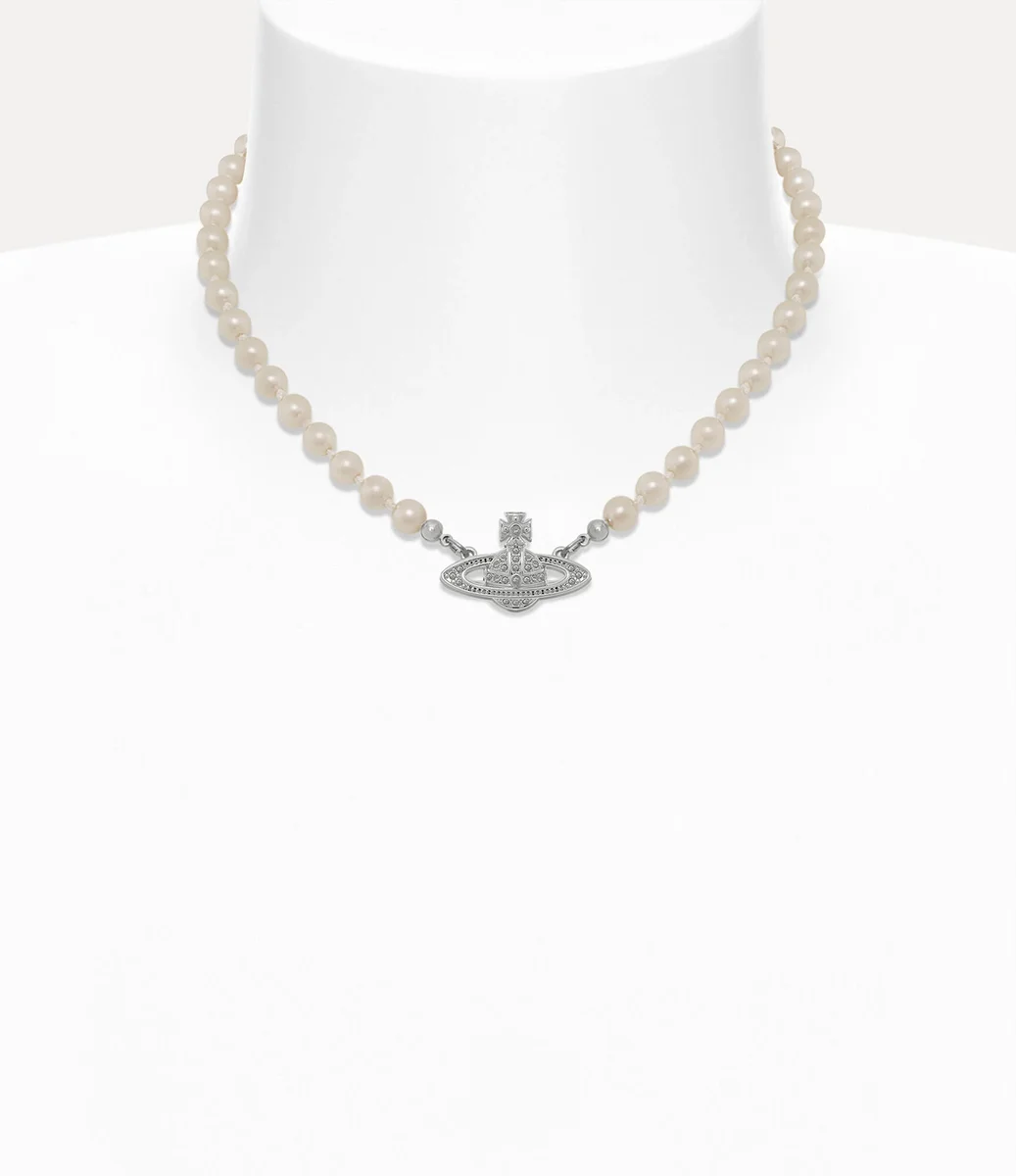 Vivienne Westwood Mini Bas Relief Pearl choker features pearl detailing, complete with the house’s signature orb motif at the centre of the design.