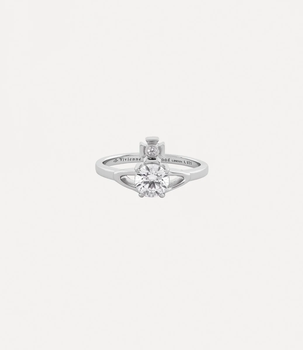 Our Reina Petite ring in recycled silver features an orb motif at the face, borrowing from the house’s signature orb emblem – synonymous with Vivienne’s vision of taking tradition into the future. The delicate band is engraved with an orb and the classic ‘Vivienne Westwood’ lettering motif on the inner band.