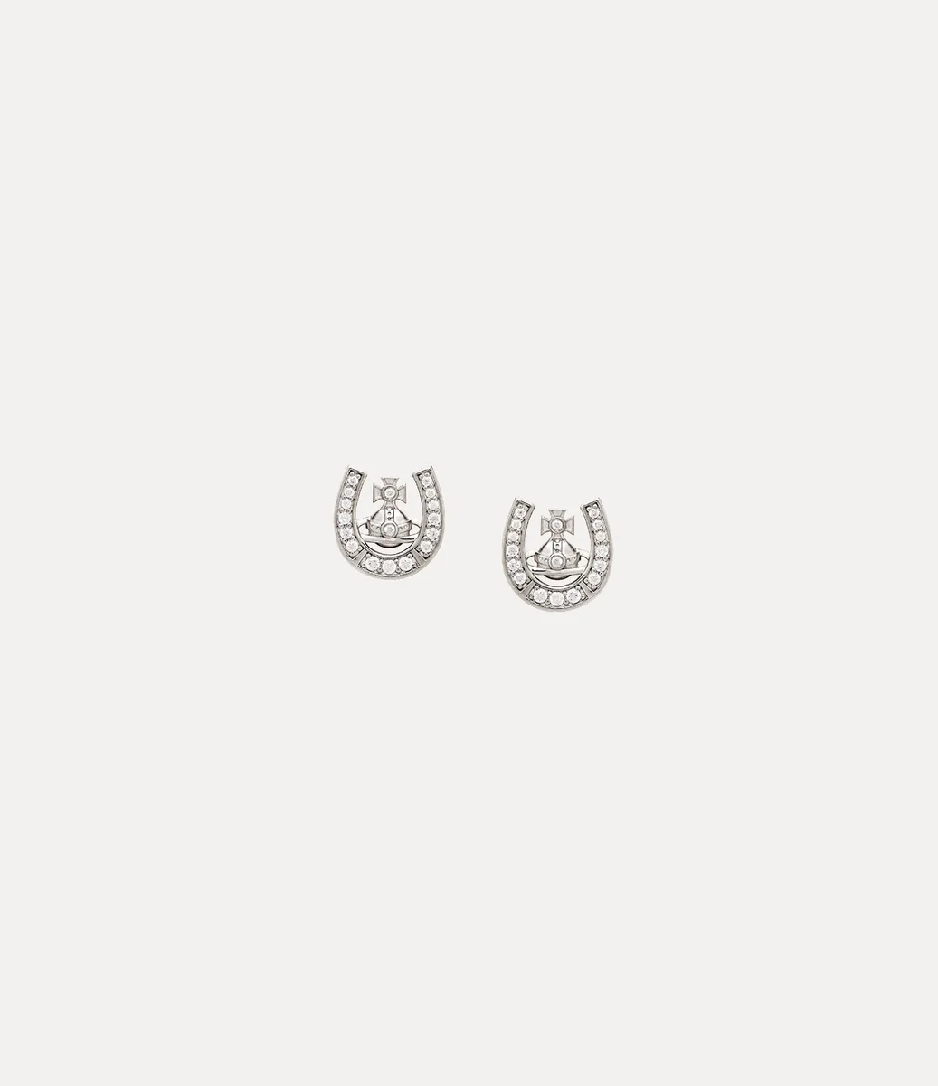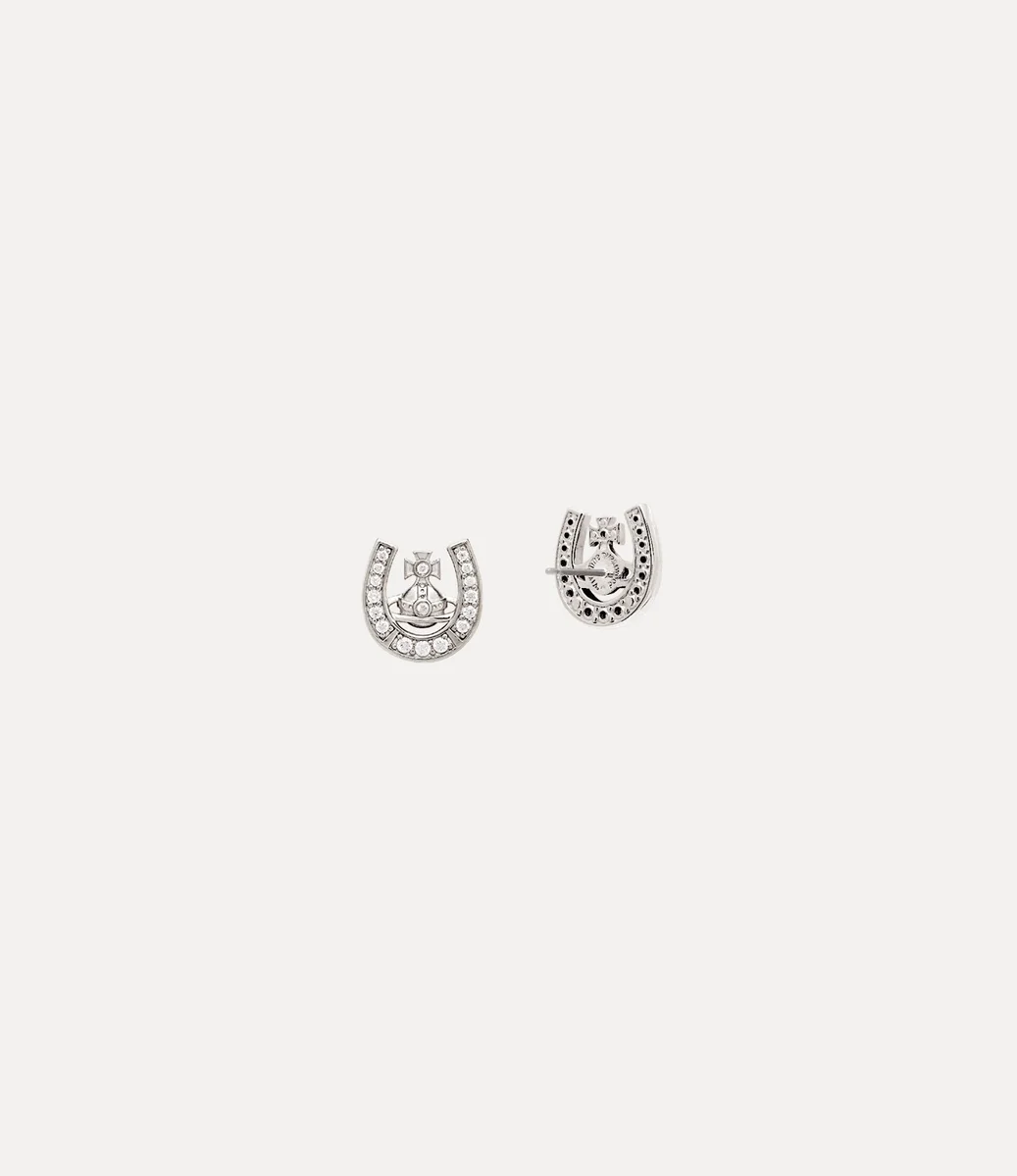 Vivienne Westwood Mare earrings in recycled silver feature a central horseshoe motif with a silver-tone orb at its centre.