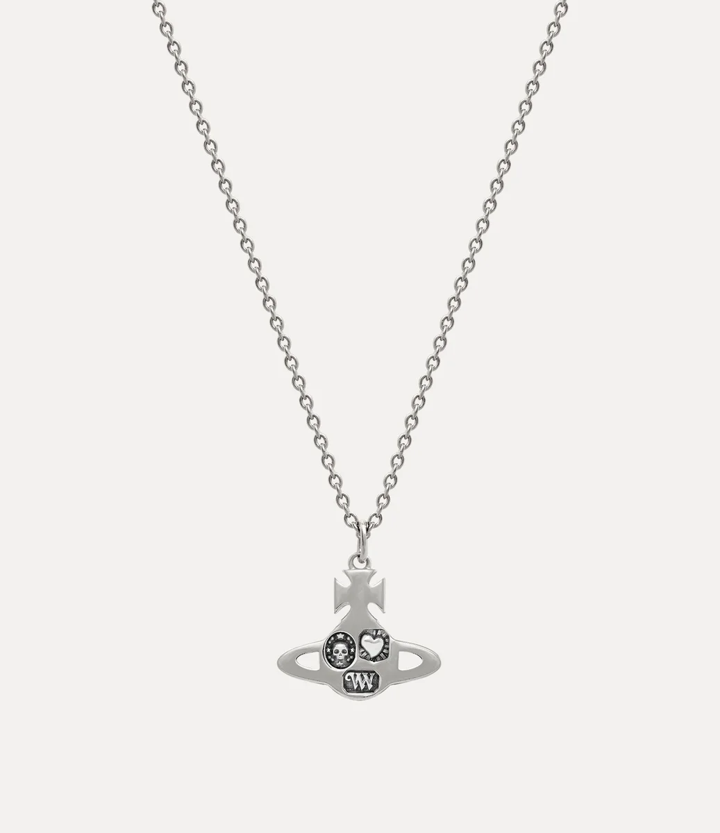 Vivienne Westwood Crispin Pendant necklace takes inspiration from traditional hallmarking, featuring intricately detailed house iconography.