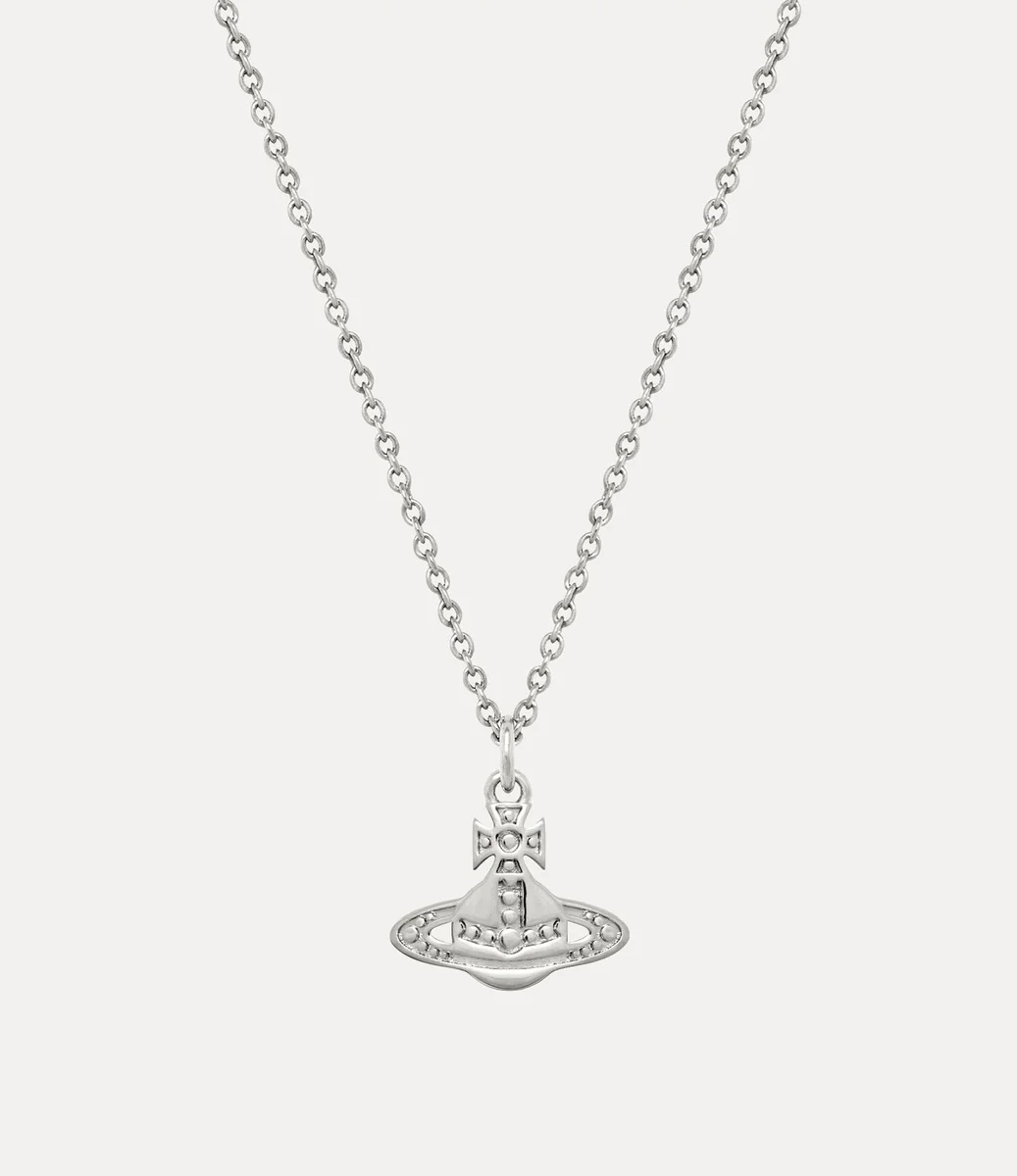 Our Marinetta Pendant necklace is crafted from silver-tone metal and centred around the house’s classic orb motif. The pendant features a gently pressed, bead-like texture that evokes a handcrafted feel, while engraved detailing highlights the contours of the cross top and Saturn ring.
