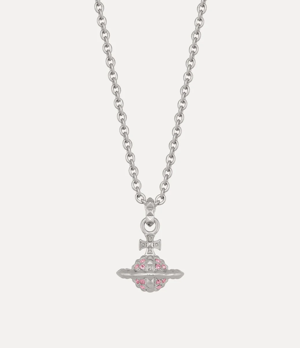 The design of our Mayfair Small Orb Pendant necklace draws inspiration from the signature orb emblem – embodying the ethos of linking the past to the future. The piece features a three-dimensional orb pendant embellished with light rose-coloured crystals and stud details, evoking the house’s signature punk approach.
