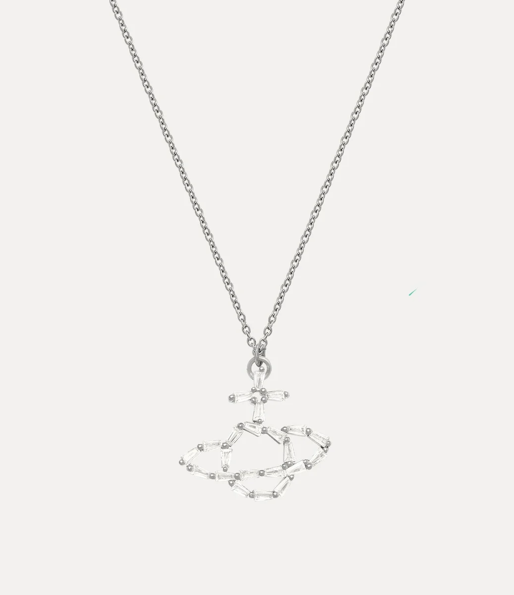 This season, our signature orb motif is reimagined with shimmering, tapered baguette-cut crystals, intricately arranged across the design. Finished with silver-toned plating, the Odetta Pendant necklace features a delicate trace chain and a secure lobster clasp closure.