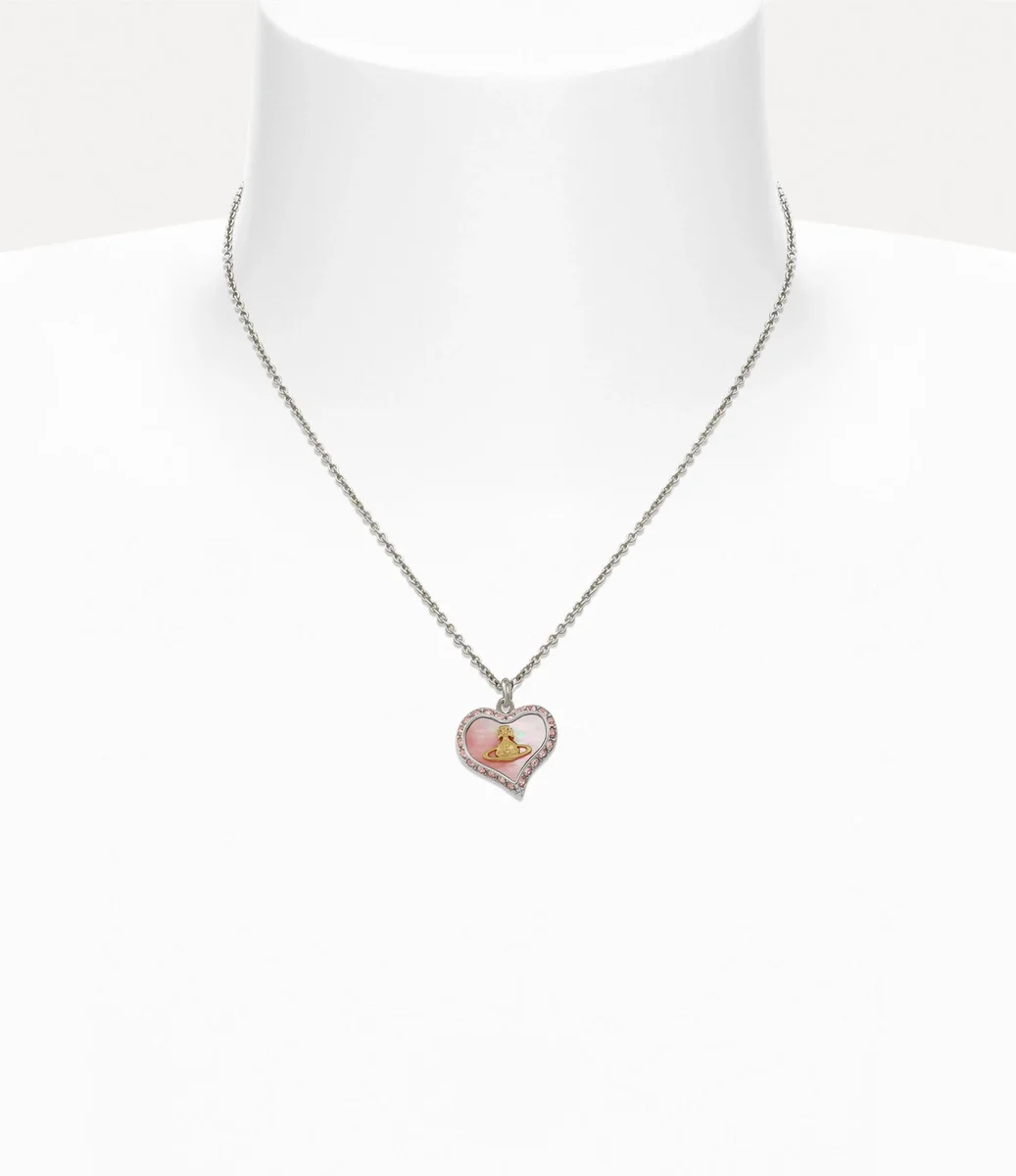 Our Petra Pendant necklace revives the house’s signature asymmetric heart motif, synonymous with Vivienne’s affection for both humanity and the planet. The motif is outlined with rose-coloured crystals and finished with a gold-tone orb motif in the centre of the design.