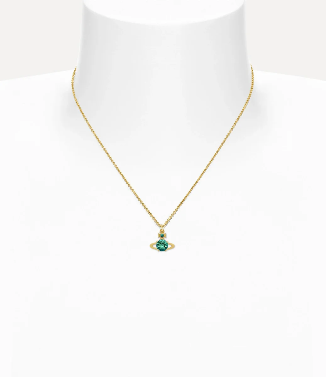Vivienne Westwood Reina Pendant necklace in gold-toned plating features the classic two-dimensional orb shape encrusted with light turquoise crystals.