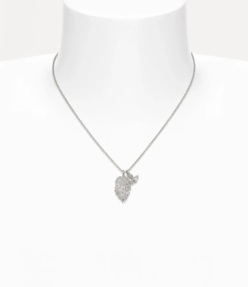 The ‘Veronica’ motif is a classic symbol of the house, reminiscent of Vivienne’s admiration for ancient art, where it was often associated with themes of fertility or strength. The Veronica Pendant necklace revives the motif, complete with an all-metal dangle orb detail in the centre of the design, evoking the ethos of launching the past into the future.