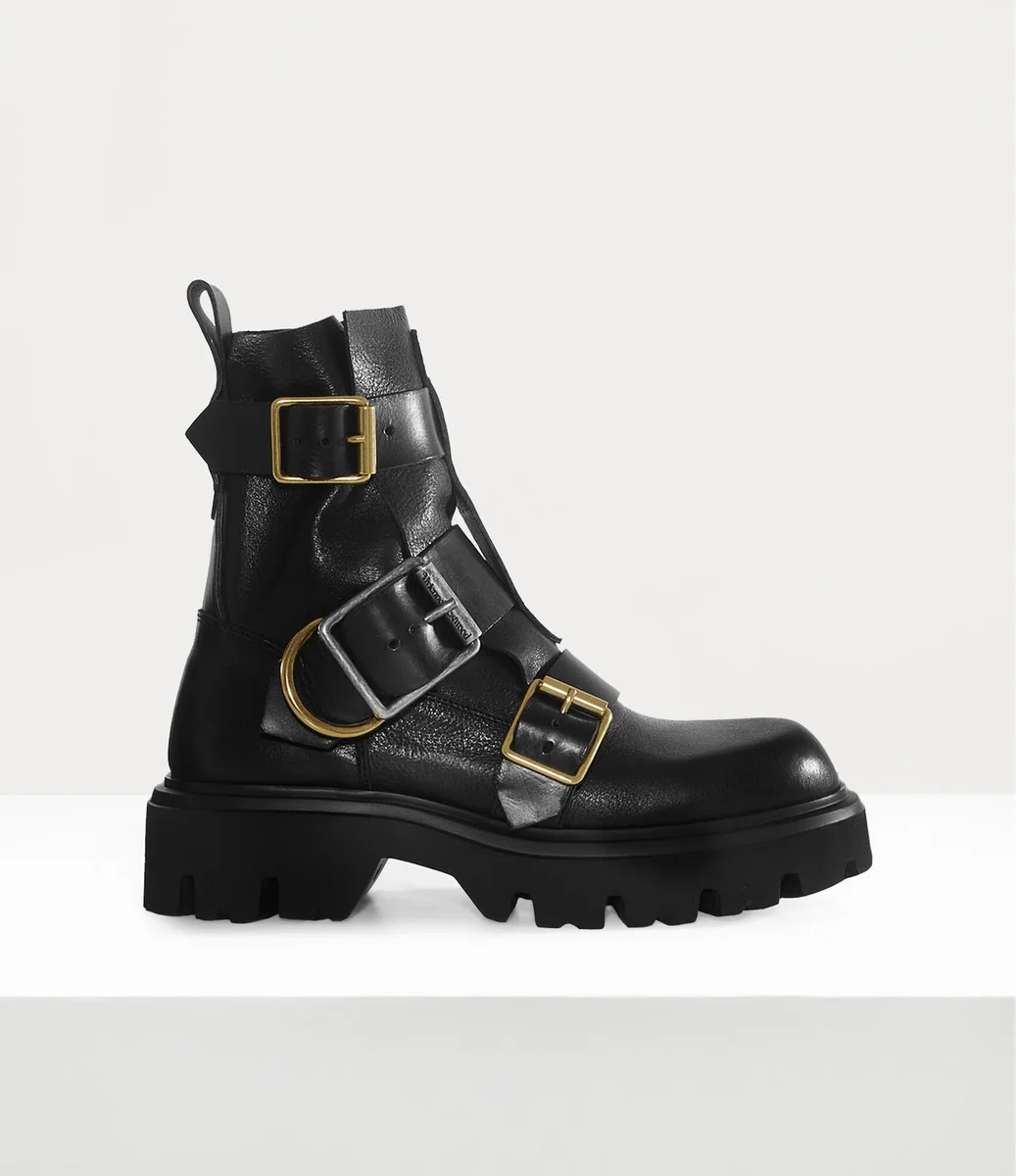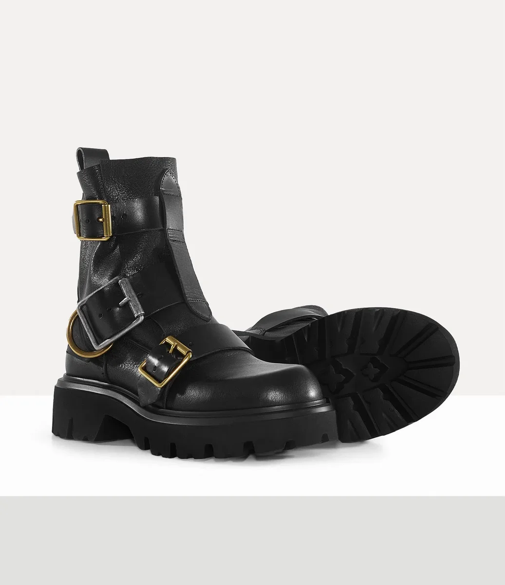 Vivienne Westwood Empire boots feature an oiled leather finish, belted leather straps and roller-buckle fastening complete with a chunky ankle-length fit.