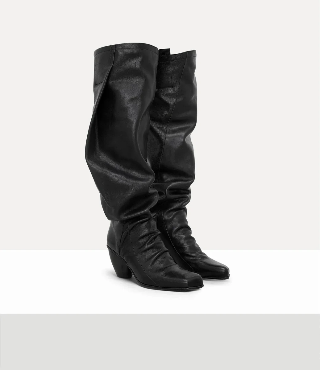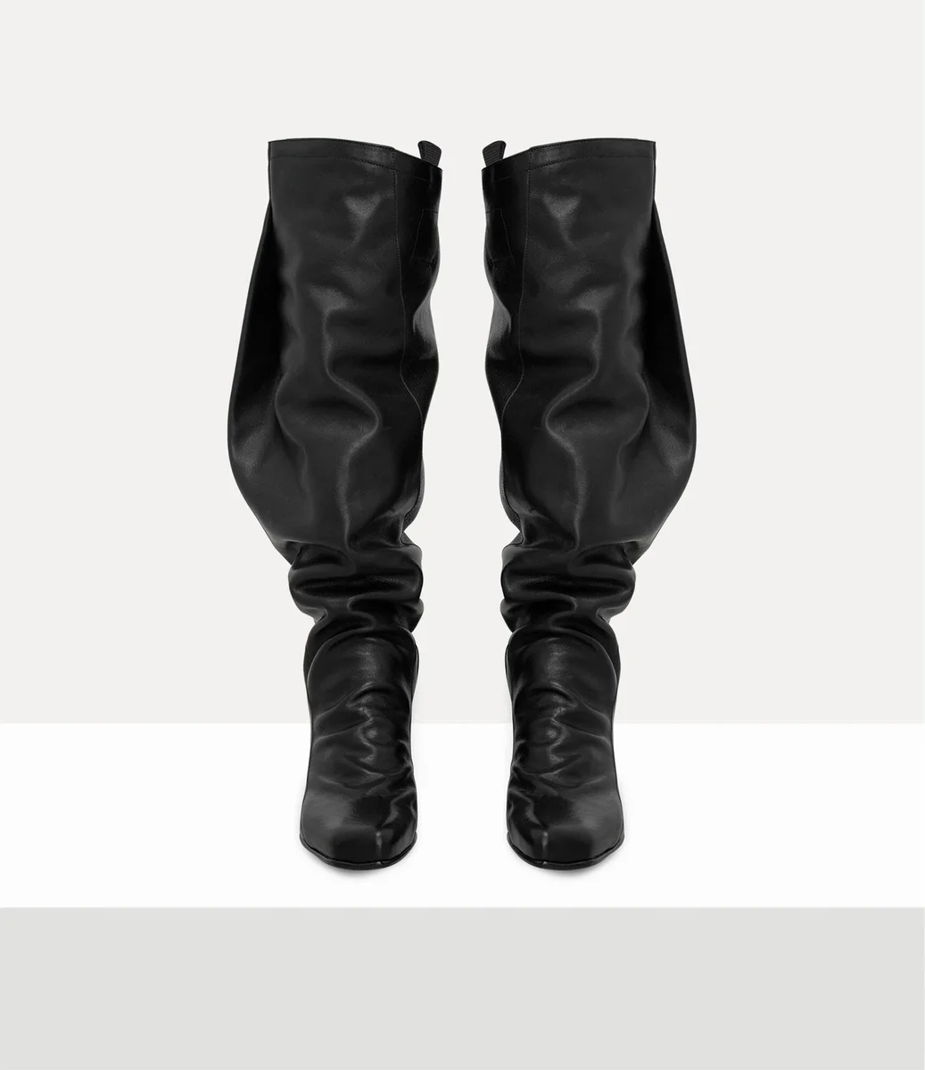 Vivienne Westwood River boots in grained leather feature our newly developed anatomical silhouette, reminiscent of the house’s signature ‘Animal Toe’ motif.