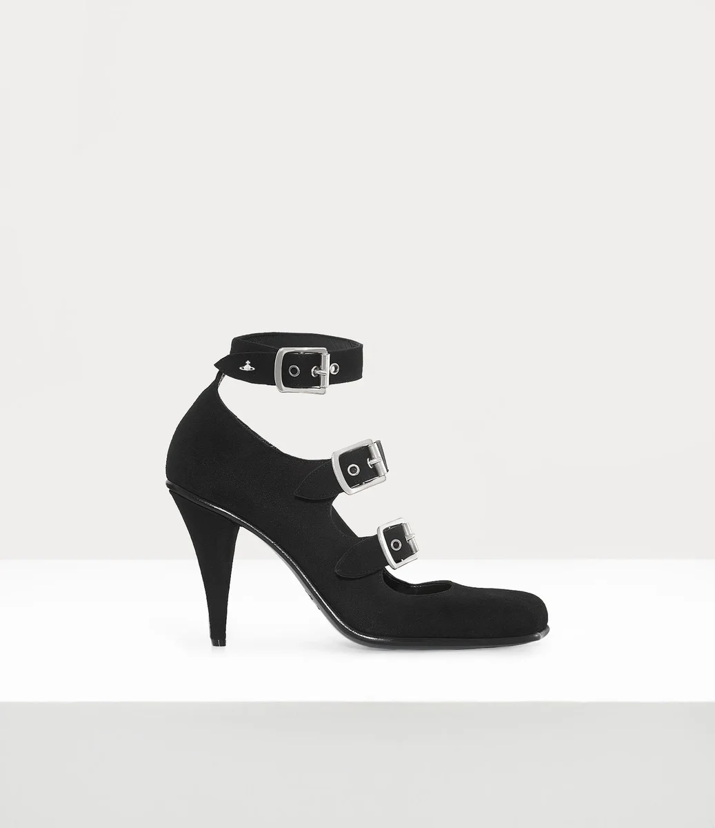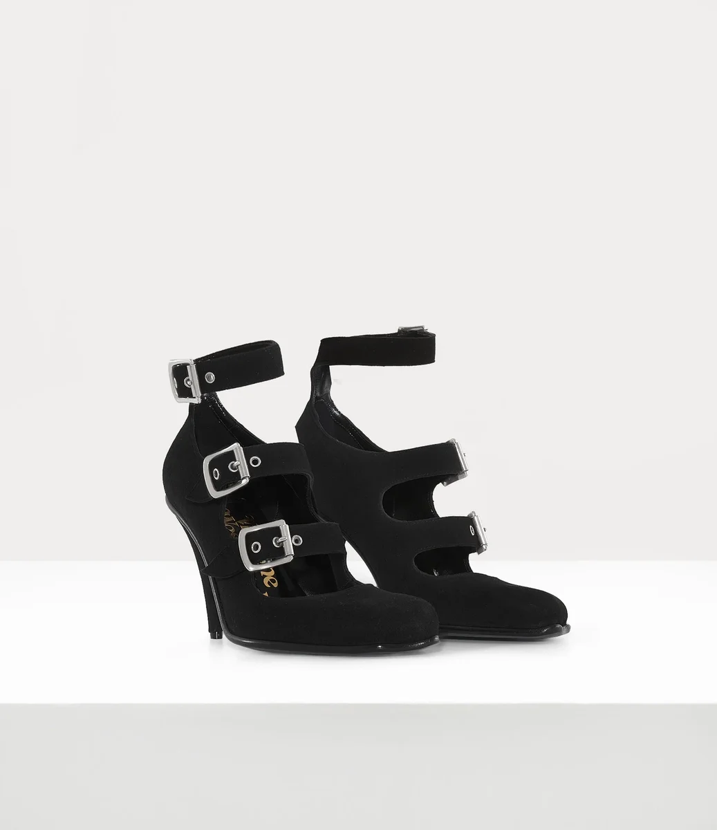 Our Savage heels feature an anatomical silhouette inspired by the House’s iconic ‘Animal Toe’ motif, first introduced in the Spring–Summer 2000 collection, ‘Summertime’. Crafted from suede leather, the design is completed with sleek silver-tone-tone hardware and miniature orb motif on the strap.